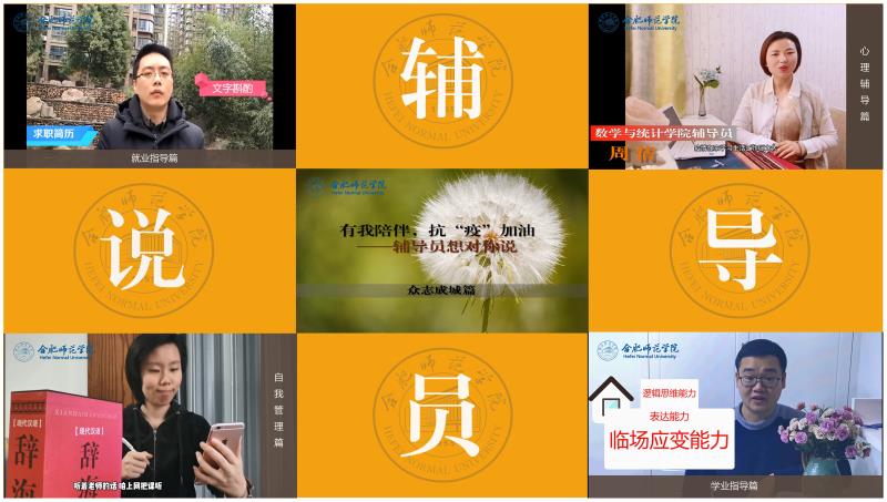 本网讯近日,在学生工作部的策划指导下,由辅导员协会会长、化学与化学工程学院张晖老师,辅导员协会副秘书长、刘铭传学院宗彪老师负责编导剪辑,党委学工部、辅导员16名老师组成团队策划拍摄了“有我陪伴,抗‘疫’加油——辅导员说”系列微视频,视频共分众志成城、心理辅导、学业指导、就业指导、自我管理五个专题,解读疫情防控中展示的中国力量、中国速度、中国精神,做好思想引导。系列视频通过“beat365唯一官方网站官微”,“合师青年”微信公众号发布和班级微信群、QQ群推送,赢得了广大同学好评。