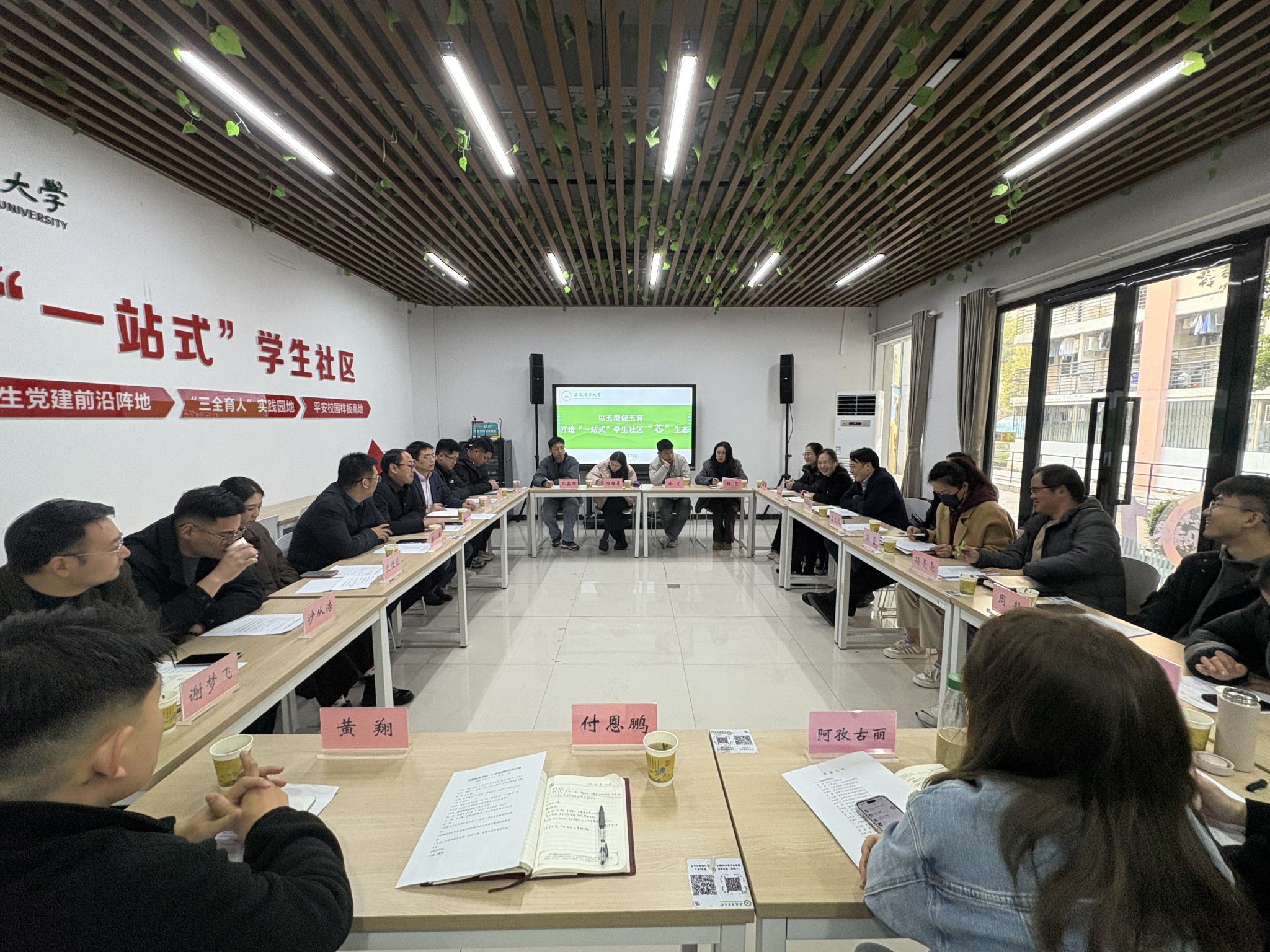 调研团队实地走访了两校“一站式”学生社区,详细了解了“一站式”学生社区的空间布局及建设情况,并就辅导员工作室建设,学生日常管理的网格化管理、危机干预、朋辈引领等工作事项展开座谈交流。