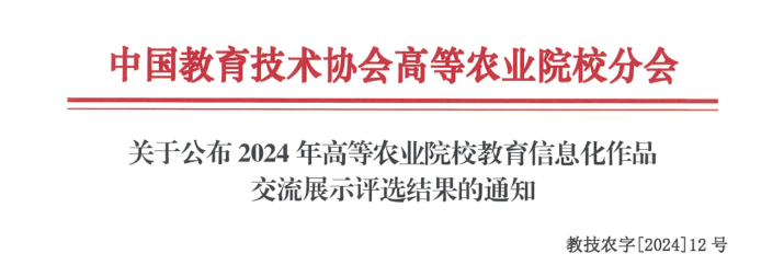 2024年12月23日,中国教育技术协会高等农业院校分会公布了2024年高等农业院校教育信息化作品交流展示评选结果,beat3659项作品获微课视频奖,获奖数量居全校第一。谭桂霞老师的微课作品获得最佳微课奖;刘倩、龚霞、聂旭亮、孙婷婷、李艳霞、刘长相、贺雪梅、吴苏琴8位老师的作品获得优胜微课奖。