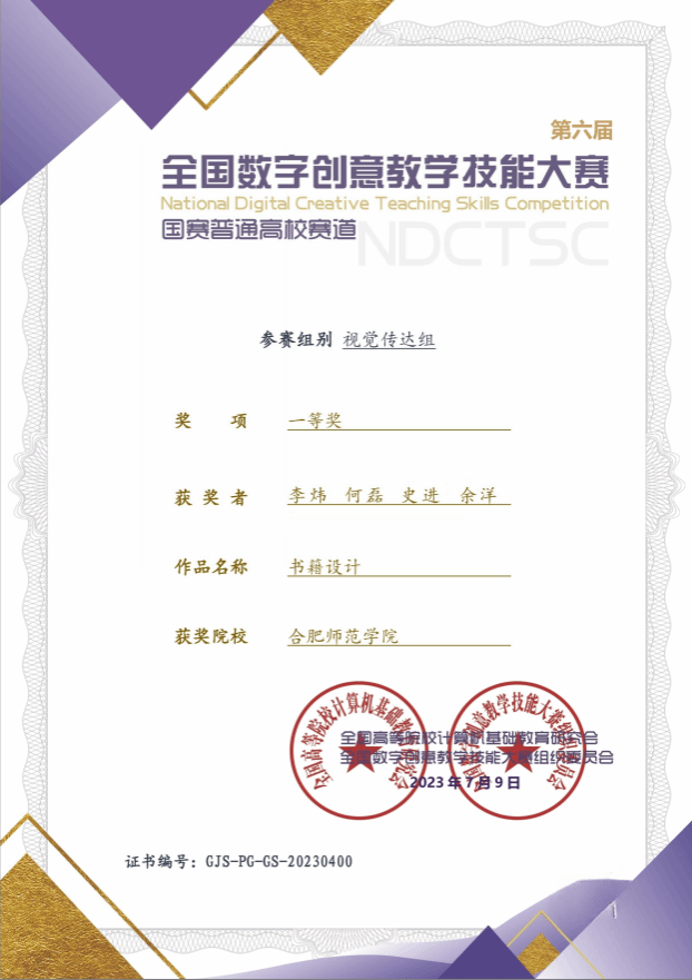 本网讯 7月初,第六届全国数字创意教学技能大赛颁奖仪式在青岛世博华创国际产教融合园举行,我院李炜、何磊、史进、余洋教师团队参赛的课程《书籍设计》获全国一等奖。该团队精研优化课程内容,践行“以学生为中心”的教育理念,围绕学生的实践能力进行教学创新改革。通过建立知识、素养、能力、品德一体化的课程内容结构、打造数字化场景的学习氛围,重在提升课堂真实应用性,促进学生全面成长。该成果得益于近年来beat365持续推进教育教学模式改革与创新的举措。