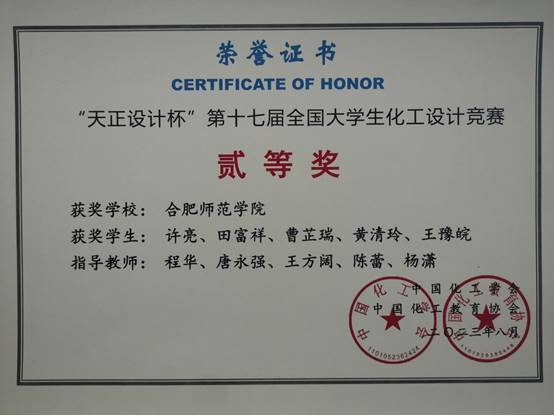 据悉,全国大学生化工设计竞赛是纳入全国普通高校学科竞赛排行榜的顶级赛事,也是目前全国高校化工学科级别最高、参赛队伍最多、影响力最大的竞赛。(化学与制药工程学院:程华)