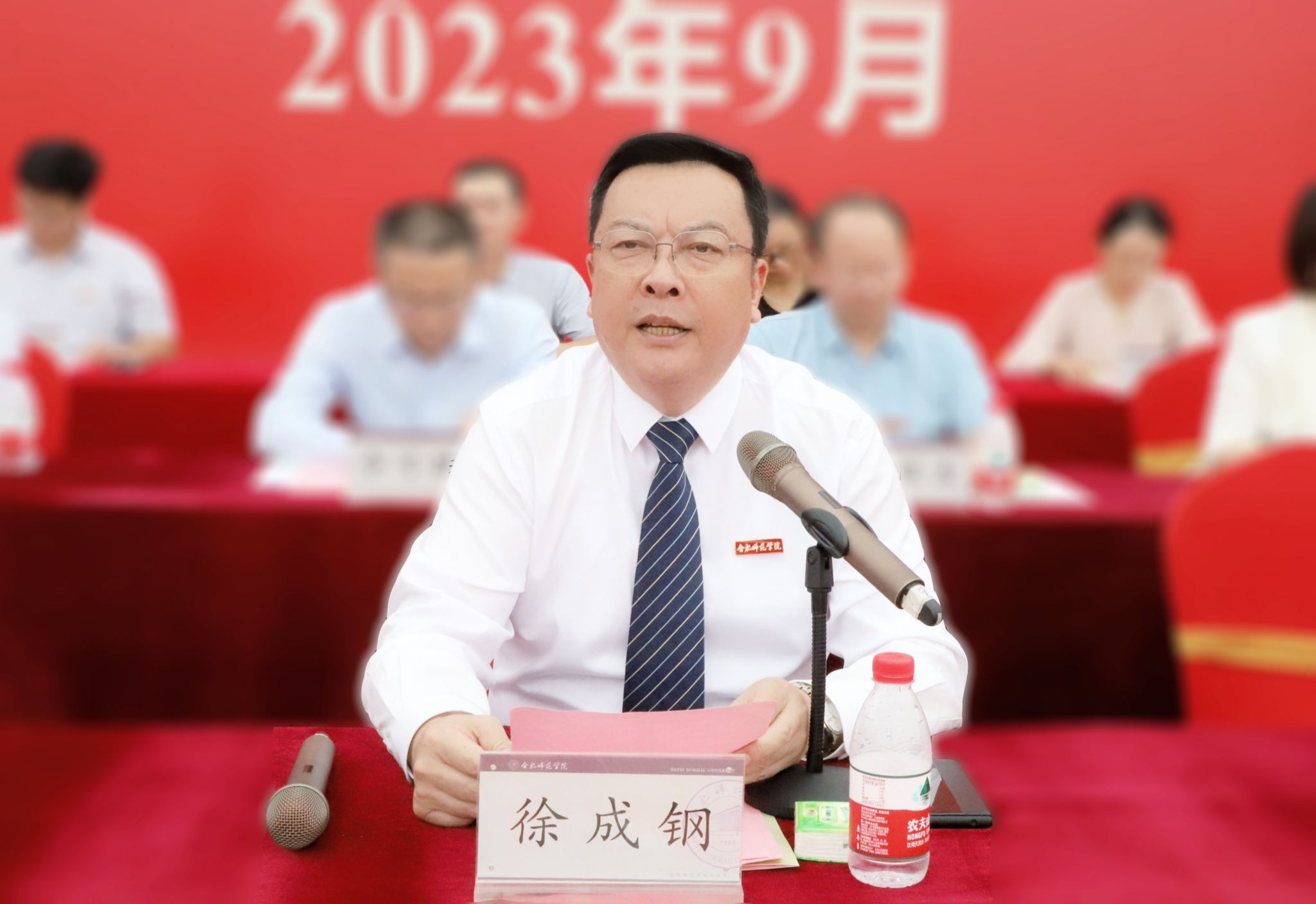党委书记徐成钢以“涵养大情怀 勇做追梦人”为主题,深情寄语新同学。一是希望同学们“立大志”,做爱满天下的坚守者。树立“强国有我、请党放心”的志向和抱负,秉承家国情怀,把个人成长追求与国家、社会发展需求结合起来。二是希望同学们“明大德”,做立德修身的践行者。从中华传统美德中和英雄人物、时代楷模身上汲取道德滋养,从自身内省中提升道德修为,在严以修身中行稳致远。三是希望同学们“成大才”,做勇立潮头的奋进者。永葆“初生牛犊不怕虎”的奋斗勇气,怀抱梦想、脚踏实地、敢想敢为、善作善成,在青春的赛道上奋力奔跑。四是希望同学们“担大任”,做知行合一的实干者。倍加珍惜宝贵的青春年华,求真知、悟真谛,深入实践、积极创新,努力做到学以致用,在勤勉实干中锤炼过硬本领。