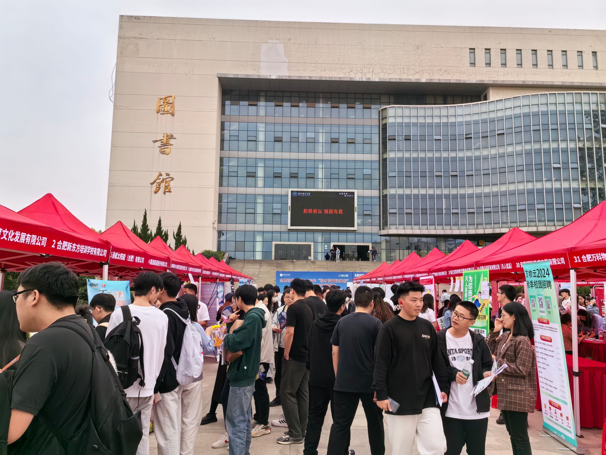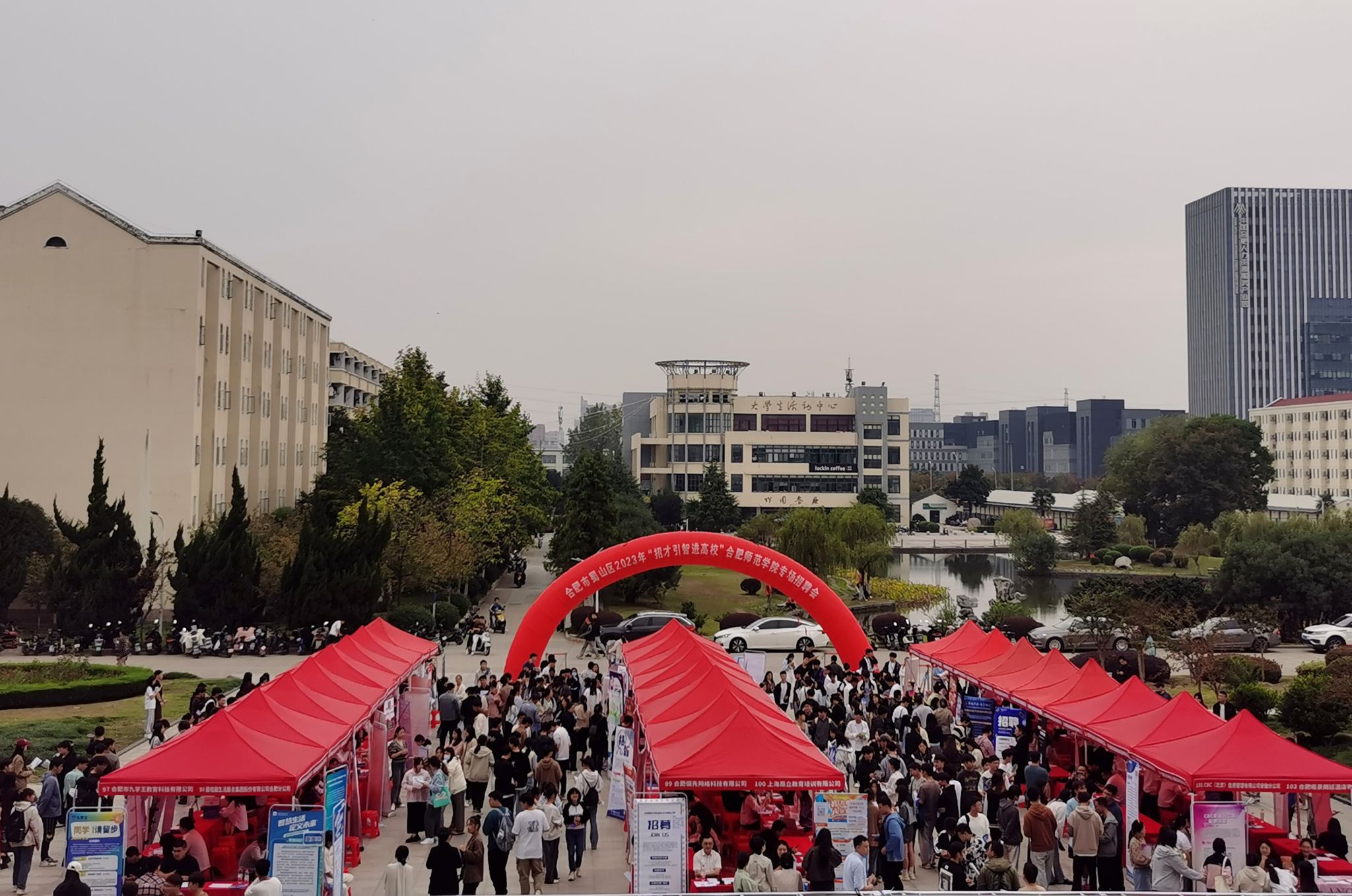 为继续拓展就业市场,发挥校园招聘主渠道作用,10月25日下午,学院联合合肥市蜀山区共同举办的“招才引智进高校”校园招聘活动在锦绣校区图书馆广场成功举行。