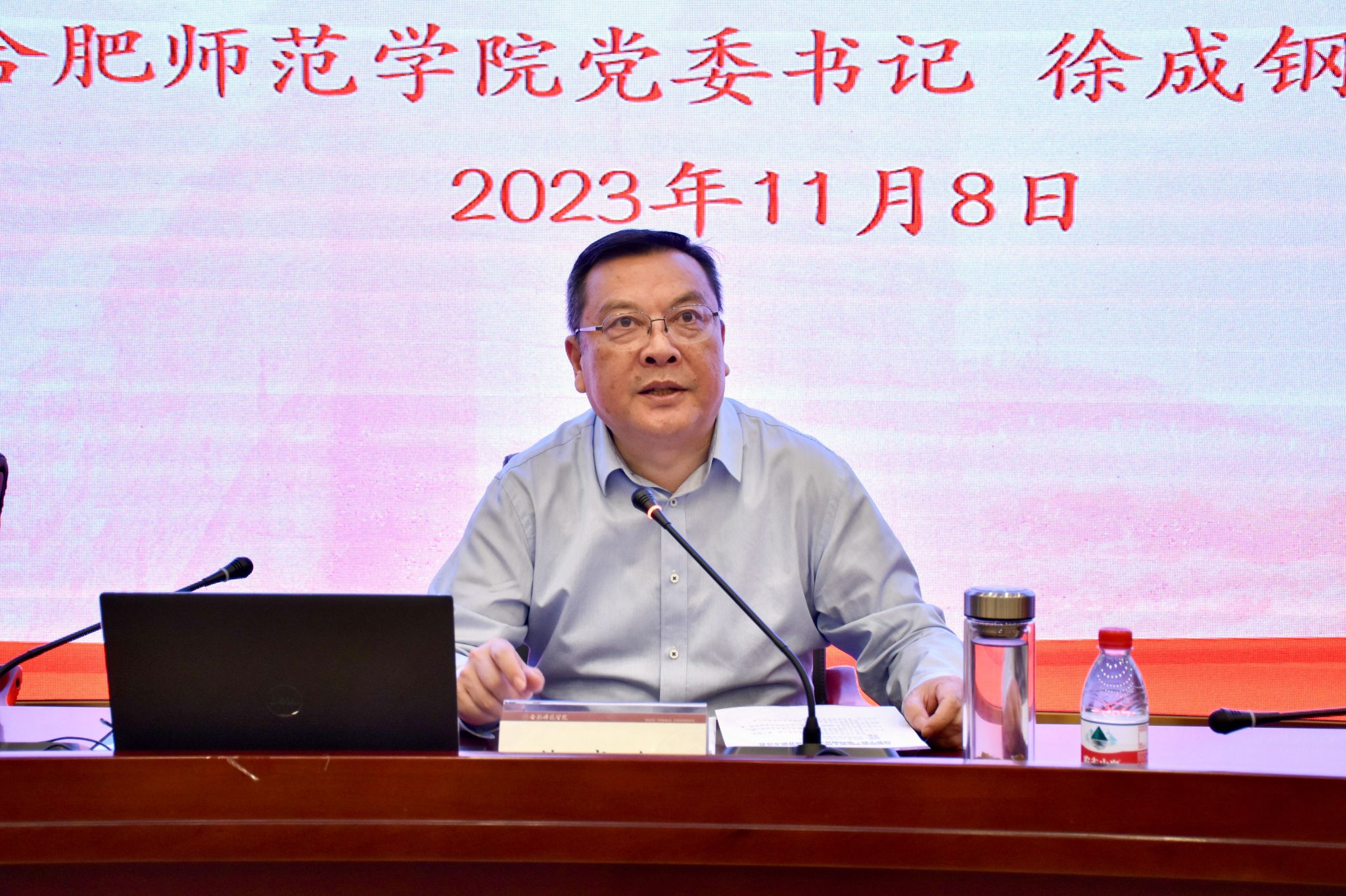 徐成钢围绕“学”“思”“用”三个关键字展开报告。一是聚焦“学”,深刻领悟习近平文化思想的重大意义和丰富内涵。解读了习近平总书记关于宣传思想文化工作的重要指示,从“习近平文化思想的首次正式提出”“如何理解习近平文化思想”和“怎样学习贯彻习近平文化思想”三个方面,深入剖析了深刻领会习近平文化思想的重大意义和丰富内涵。二是聚焦“思”,坚定文化自信自强,不断提升文化软实力。围绕“什么是文化软实力?”“如何提升文化软实力?”两个关键问题展开阐述,指出要努力夯实国家文化软实力的根基,传播当代中国价值观念,展示中华文化独特魅力,努力提高国际话语权。三是聚焦“用”,以习近平文化思想为引领,扎实推进校园文化建设。立足校园文化建设,阐释学院行知精神与“四有”好老师的内在联系,介绍了学院“弘扬行知精神、落实立德树人根本任务”“担负高校新的文化使命、扎实推进校园文化建设”的积极探索和特色做法。