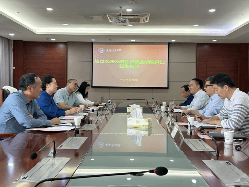 11月3日下午,合肥科技职业学院副院长徐芳、总务资产处处长王鑫、科长解光存和宋文洁一行来我院调研“安徽省绿色学校”创建工作,党委委员、副院长华银峰,后勤处(基建办)处长李建礼及相关科室负责人等接待了调研组,会议在锦绣校区行知楼2008会议室举行。