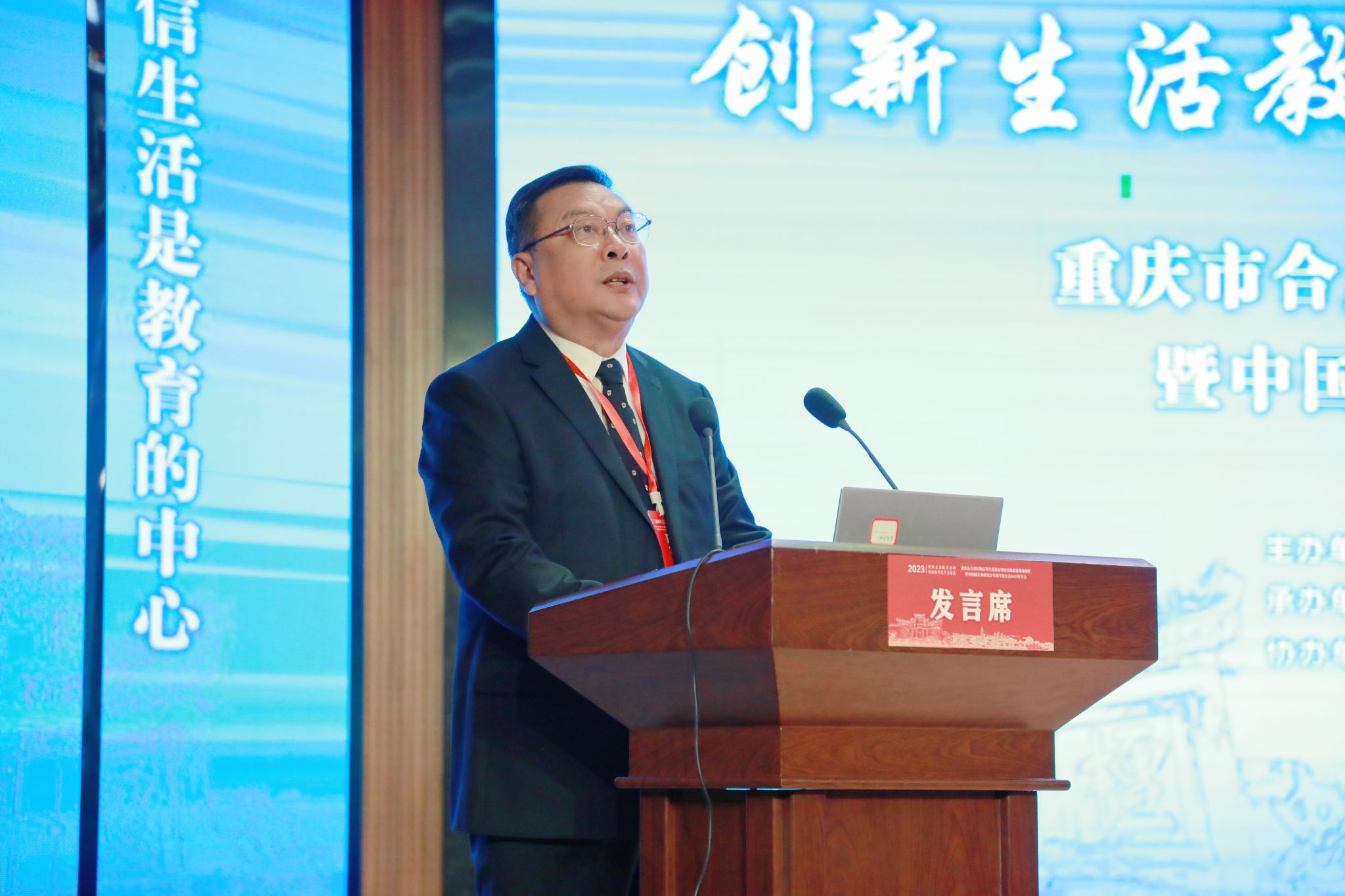 会上,徐成钢发表讲话。他指出,陶行知是近现代最具平民情结、最具创造精神、影响最深远的人民教育家。“千教万教,教人求真;千学万学,学做真人。”“陶行知先生给我们留下的最有价值的、最具影响力的精神财富就是以生活教育学说为核心的科学理论。”徐成钢强调,在中国教育改革逐步深化的今天,陶行知教育思想对于解决当下的教育问题具有重要的现实意义,教育者需要回望陶行知在重庆合川的教育改革实践,不断创造性转化和创新性发展陶行知的教育思想,重新认识陶行知教育思想的时代价值。