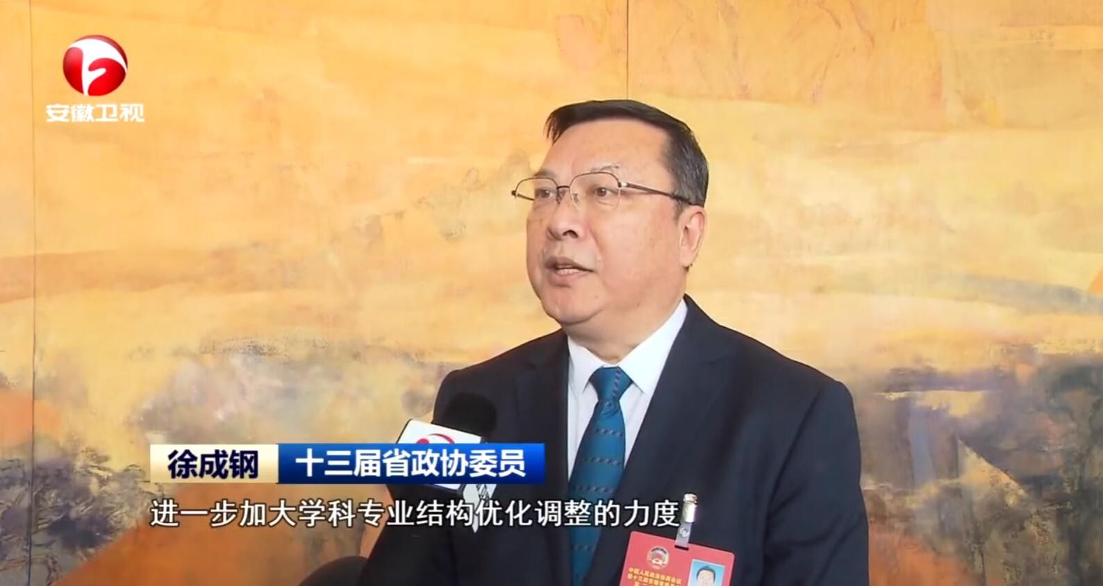 安徽卫视《安徽新闻联播》以《【两会进行时】聚共识同心筑梦 担使命共启新程——省政协十三届二次会议开幕侧记》为标题,报道省政协委员们胸怀“国之大者”“省之大计”“民之关切”,积极建言资政、广泛凝聚共识,在全面建设现代化美好安徽中展现新担当新作为。十三届省政协委员,我院党委书记徐成钢接受《安徽新闻联播》采访。