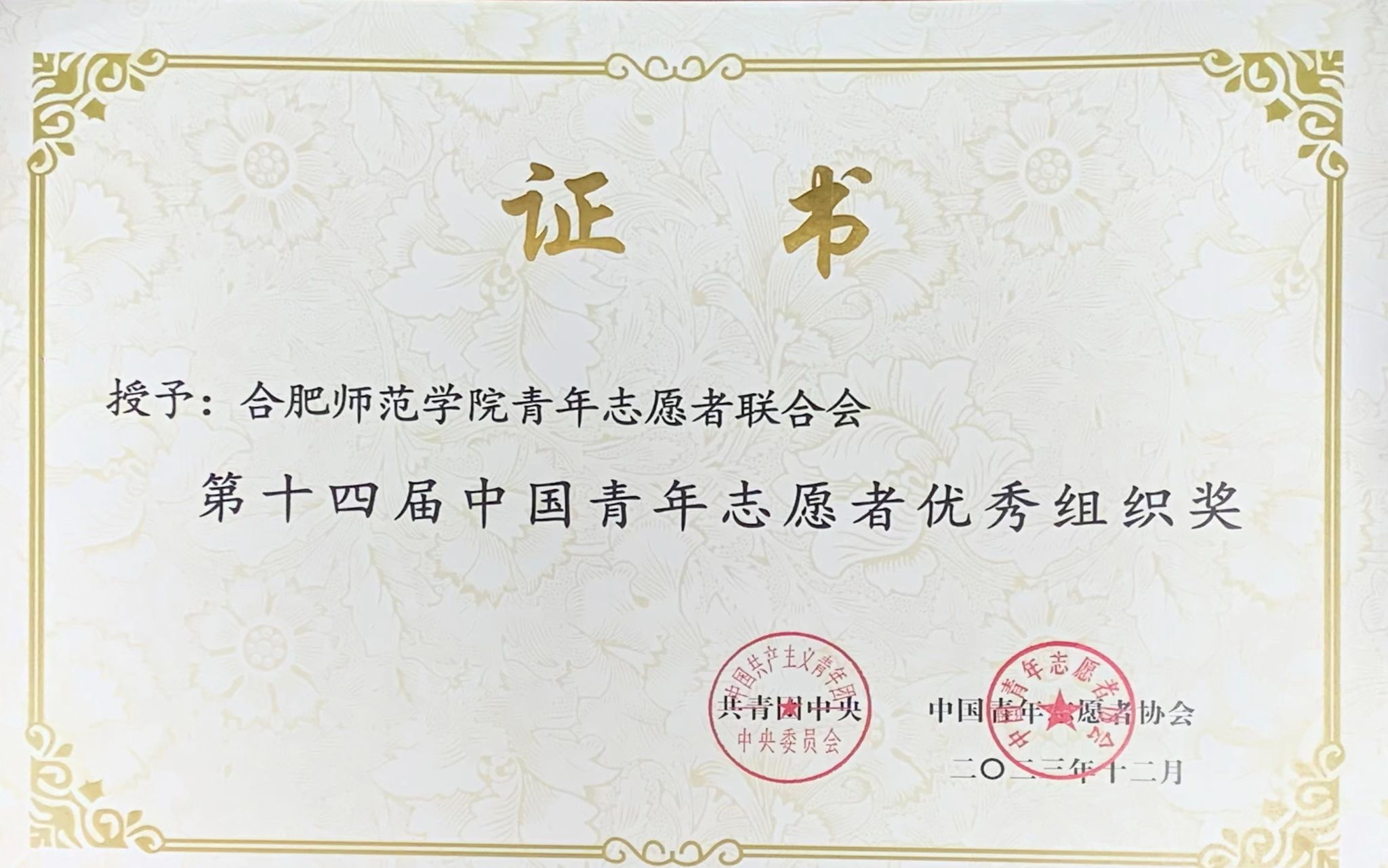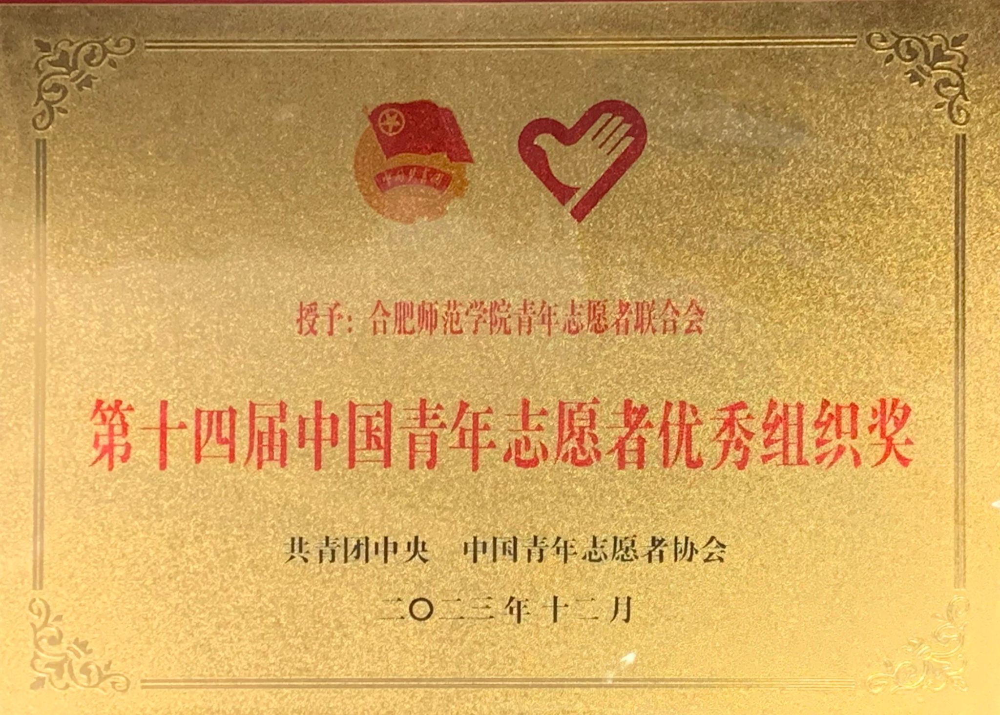 近日,共青团中央印发《关于表彰第十四届中国青年志愿者优秀个人奖、组织奖、项目奖的决定》,我院青年志愿者联合会荣获第十四届中国青年志愿者优秀组织奖。该奖项是我国青年志愿服务领域的最高荣誉,本次全国共有100个组织获奖,安徽省仅3个。