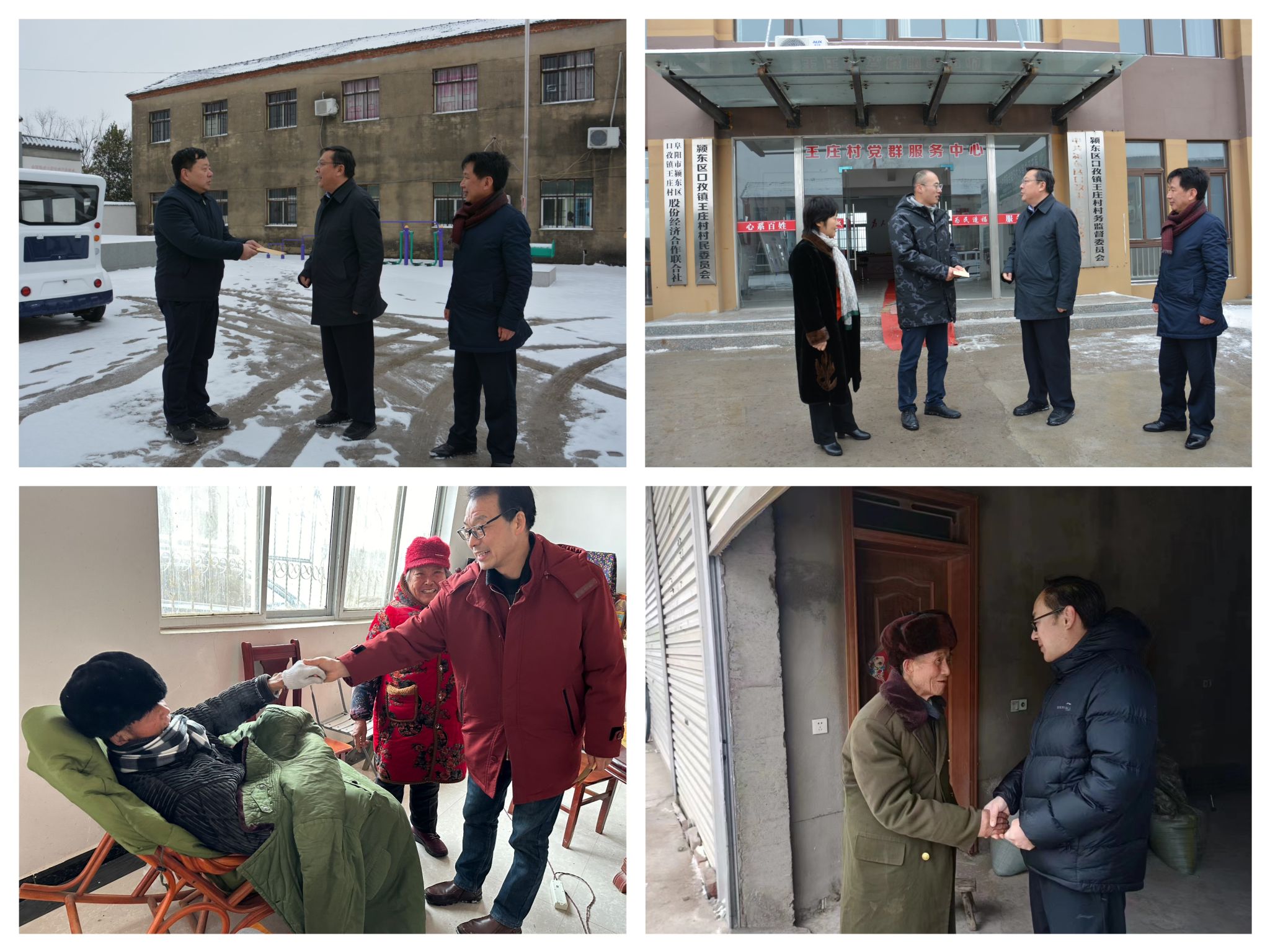 在龙年新春佳节即将来临之际,2月2日,院党委书记徐成钢,党委委员、纪委书记、监察专员徐文林带领全体帮扶干部,顶寒风、踏冰雪,前往学院定点帮扶单位阜阳市颍东区口孜镇王庄村和洪阳村,看望慰问帮扶群众和我院驻村挂职干部,实地走访调研帮扶工作。