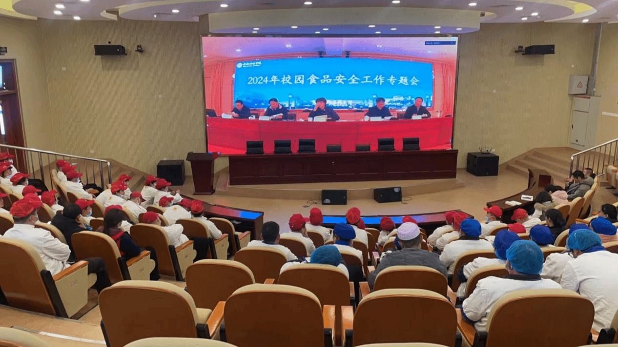本次会议采用主-分会场形式,滨湖校区食品从业人员在滨湖校区学术报告厅观看视频直播。后勤处(基建办)负责人李建礼领学了《全省校园食品安全排查整治专项行动实施方案》《集中用餐单位食堂防鼠八项措施》等相关文件,对2023年校园食品安全工作简要回顾,并对2024年校园食品安全工作做出部署。