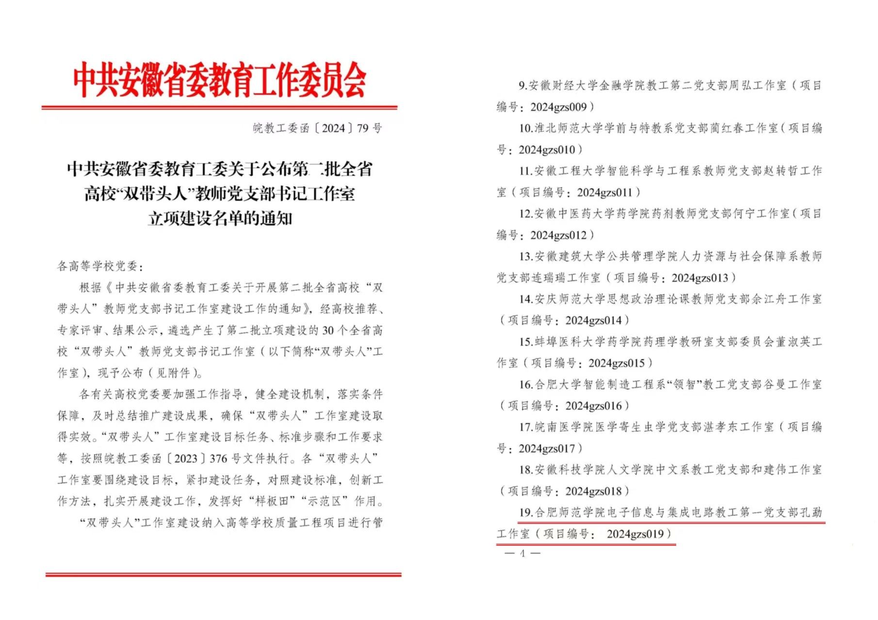近日,中共安徽省委教育工委发布《关于公布第二批全省高校“双带头人”教师党支部书记工作室立项建设名单的通知》,遴选建设全省高校30个“双带头人”教师党支部书记工作室,beat365电子信息与集成电路学院教工第一党支部孔勐工作室获批立项建设。