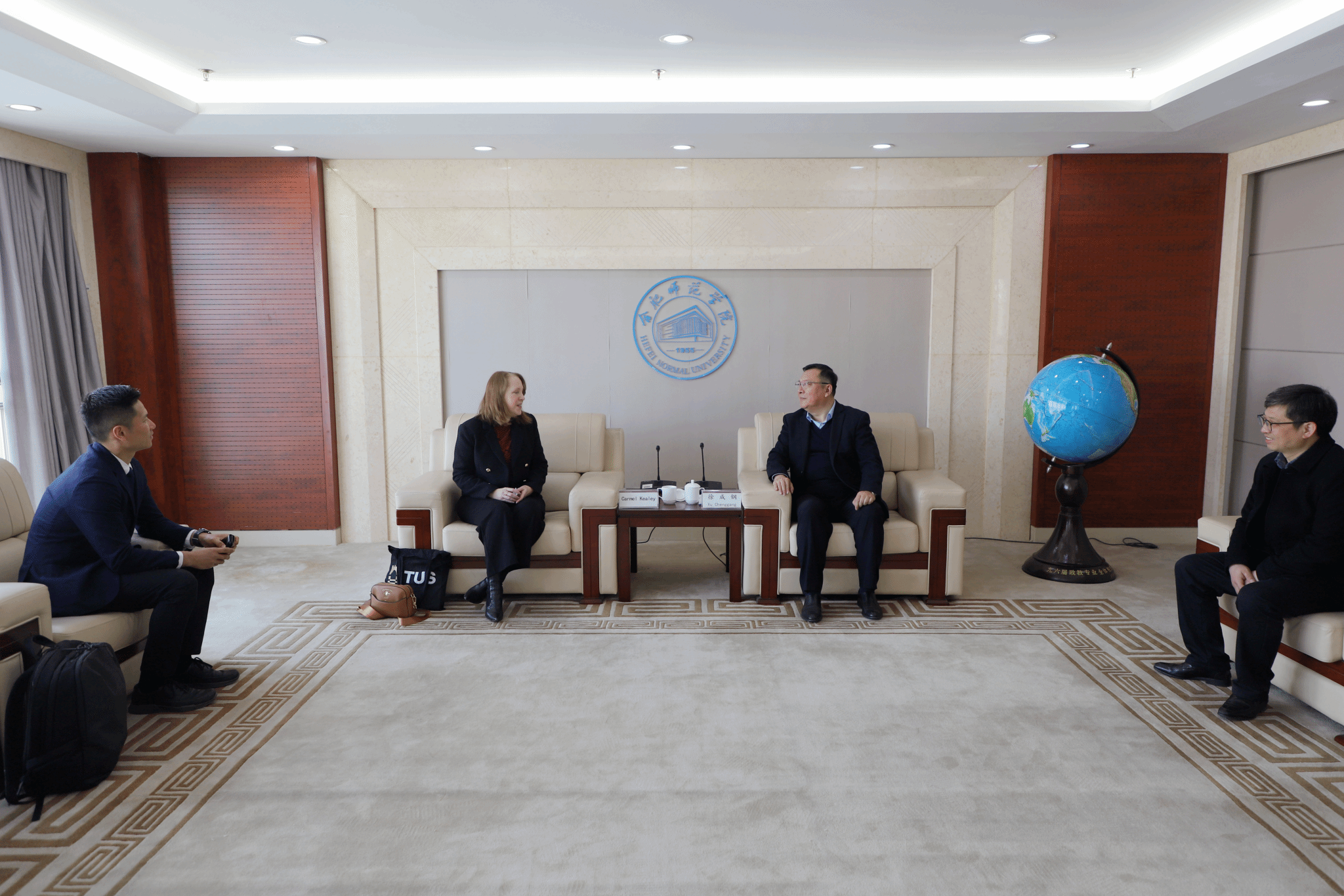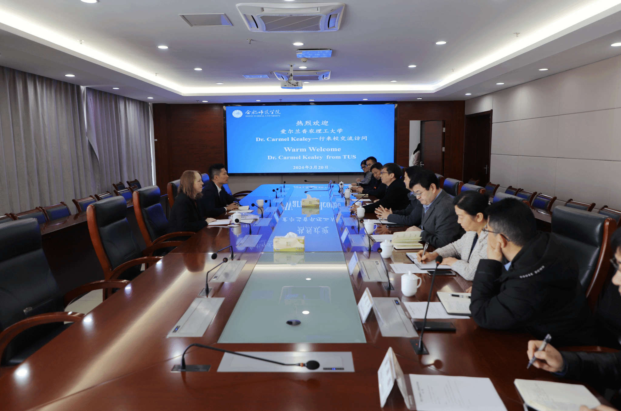 在行知楼1908接待室,院党委书记徐成钢热情接见了来宾,并代表学院表示热烈欢迎。徐成钢表示,beat365唯一官方网站一直以来十分重视与爱尔兰香农理工大学(原阿斯隆理工学院)之间近十年的交流合作,希望两校能齐心协力进一步办好中爱制药工程本科教育项目,Dr. Carmel Kealey也对我院精心安排这次来访交流表达了感谢。党委委员、副校长华银峰,宣传部,人事处,教务处,研究生处,国际交流与合作处,化学与制药工程学院等相关负责人与教师参加了接见会。