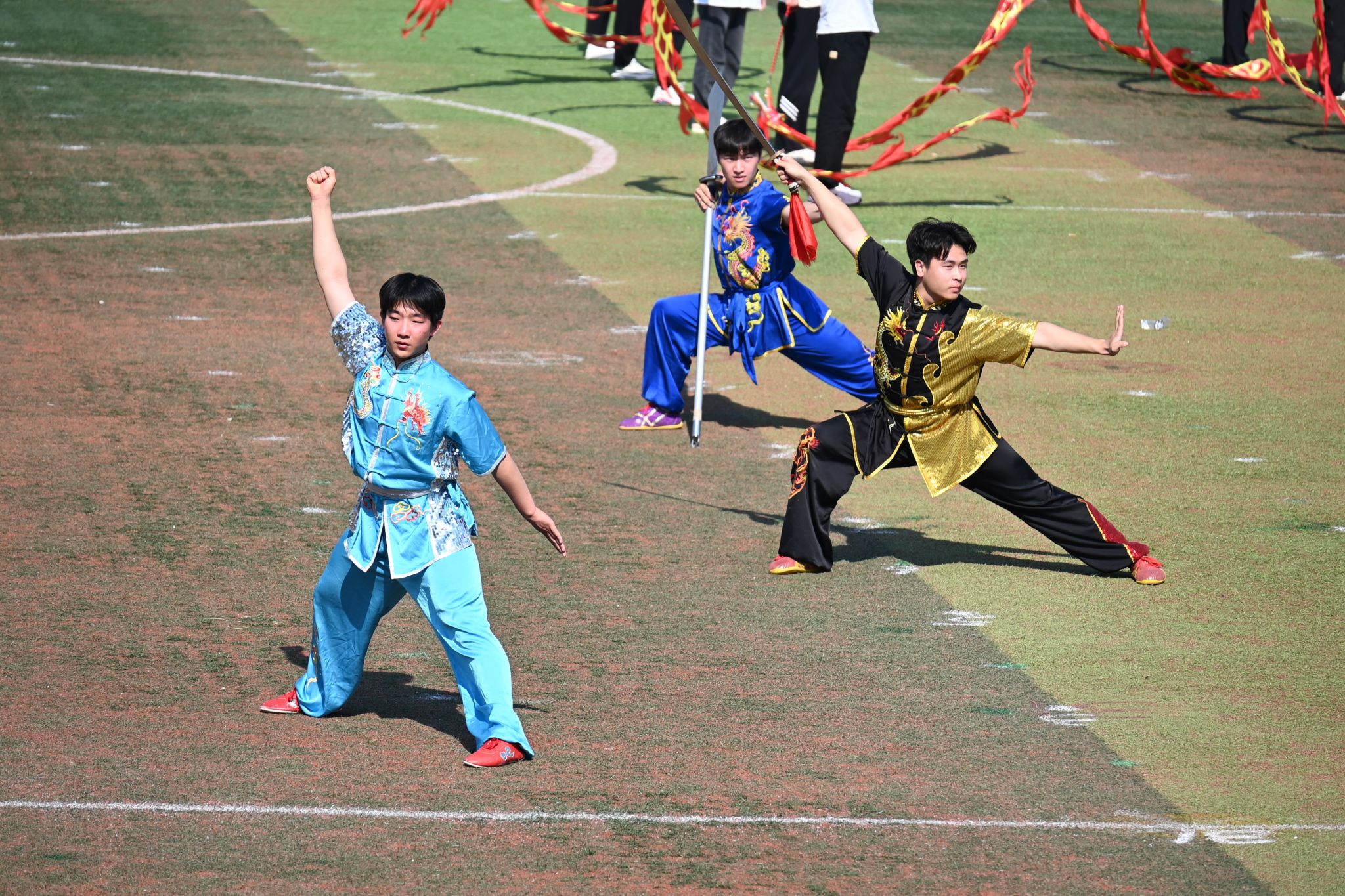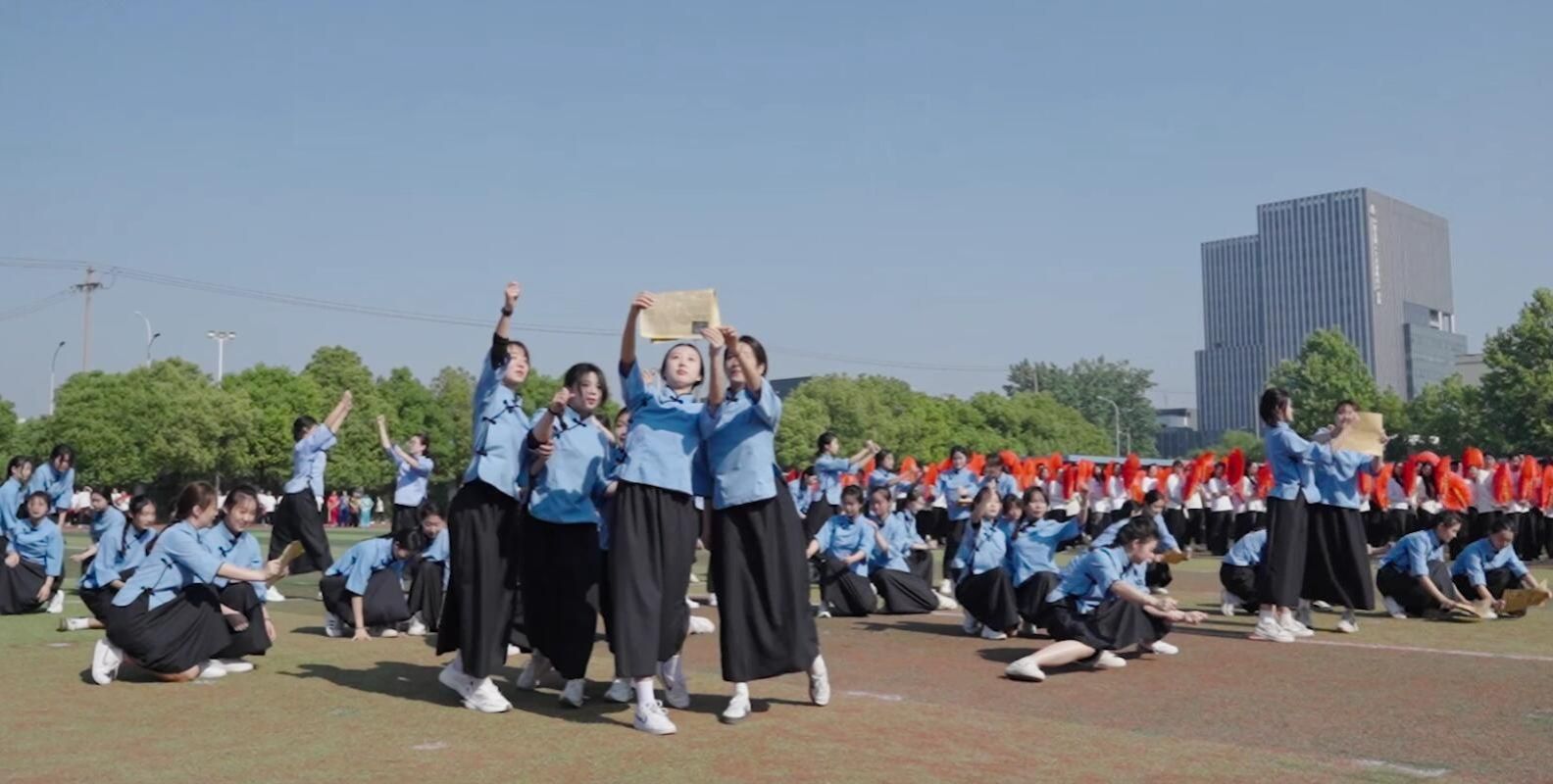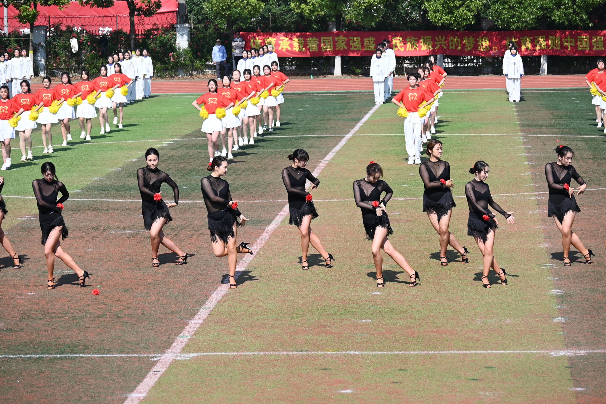 运动会正式比赛开始前,举行了教学汇报表演。《觉醒1919》 《再次出发》《未来我来》《师舞青春》《上春山—青春的光芒》等6个表演节目精彩纷呈,赢得现场师生的阵阵喝彩。
