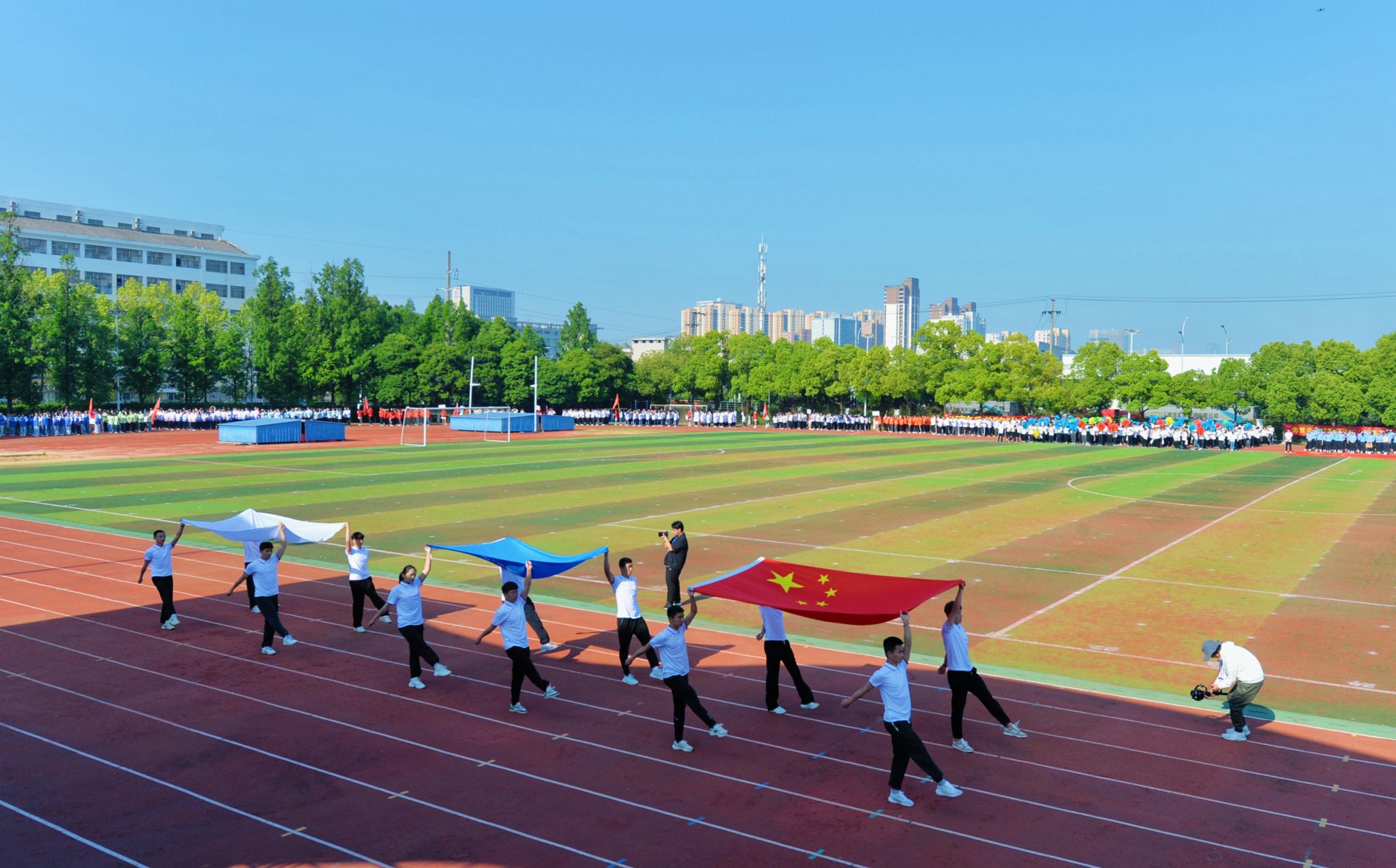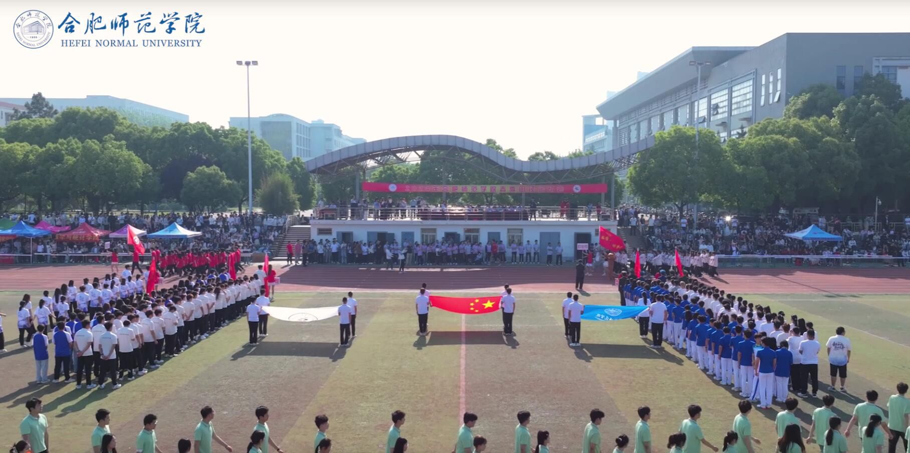 伴随着激昂嘹亮的运动员进行曲,护旗方阵、各学院方阵、研究生方阵、裁判员方阵等迈着整齐的步伐依次入场。各学院方阵各具特色、个性鲜明,充分展示了各学院专业特色,彰显了合师学子青春风采。