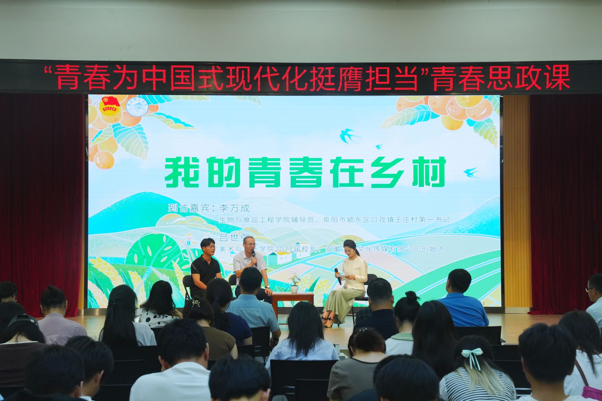 本次青春思政课主题鲜明,从理论引领的新航向到创新创业的新征程,从乡村振兴的艰难历程到绿色发展的青春助力,从社会服务的尽心竭力到卫国戍边的满腔热血,引导合师青年更加清醒地认识到“民族复兴、强国建设”的使命在肩,当更加坚定地树立“请党放心、强国有我”的报国之志,号召广大青年要接过时代的接力棒,踔厉奋发,施展才干,让青春在中国式现代化新征程中书写挺膺担当的华彩篇章。(院团委:李梦媛、高思雨/文 焦心怡/图)