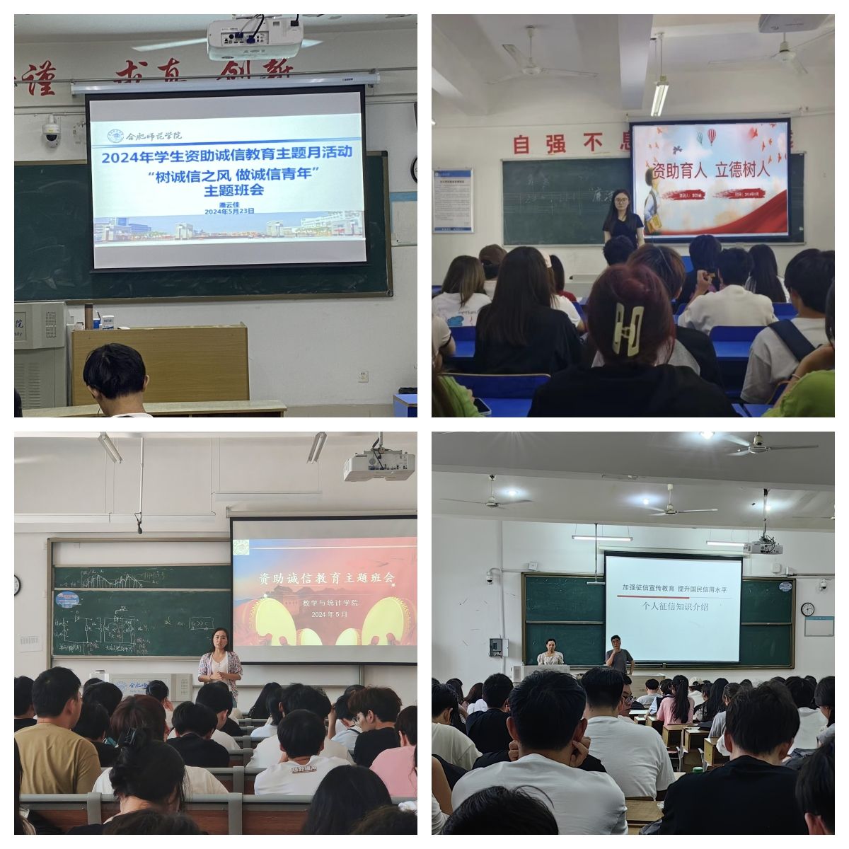 教育与心理科学学院围绕诚信感恩教育,开展了志愿服务、书法展、手抄报等系列活动,做到受资助学生全员覆盖、全员参与,进一步引导广大学生深入了解国家资助政策和学院工作举措,在系列活动中进一步强化感恩意识和诚信意识。化学与制药工程学院开展以涵盖历史诚信故事、当代诚信事迹、诚信漫画图片、诚信书法作品等内容的诚信图片展,线上浏览量达1000多人次。外国语学院通过“外院新青年”网络平台宣传优秀学生代表事迹,鼓励广大学生自觉成为诚实守信、自强不息的文明学生。美术与设计学院结合学科专业特色,举办资助诚信绘画比赛,把资助教育与感恩教育、反诈骗教育等融入学生日常教育中。音乐学院开展诚信感恩征文比赛,鼓励同学用文字讲述自己或者身边人诚信感恩、自立自强的故事。体育科学学院开展受助学生主题座谈会,使学生对国家、学校资助政策有了更为全面的了解,帮助受助学生树立正确的消费观、价值观。经济与管理学院、物理与材料工程学院举办资助诚信教育主题演讲比赛,选手围绕“励志、奋斗、诚信、感恩”四大主题分享成长经历和奋斗故事。数学与统计学院、物理与材料工程学院组织各班级举办诚信励志宣誓活动,全体同学在辅导员或班长的带领下齐声宣读诚信誓词,表达培养诚信品质的决心。外国语学院、音乐学院、马克思主义学院、生物与食品工程学院、音乐学院开展诚信签名活动,在广大同学中间营造出“人人知诚信,人人讲诚信”的良好氛围。电子信息与集成电路学院、化学与制药工程学院、文学院开展签订诚信承诺书活动,倡导学生自觉做到诚实守信,使同学们明确“人无信则不立”的道理。