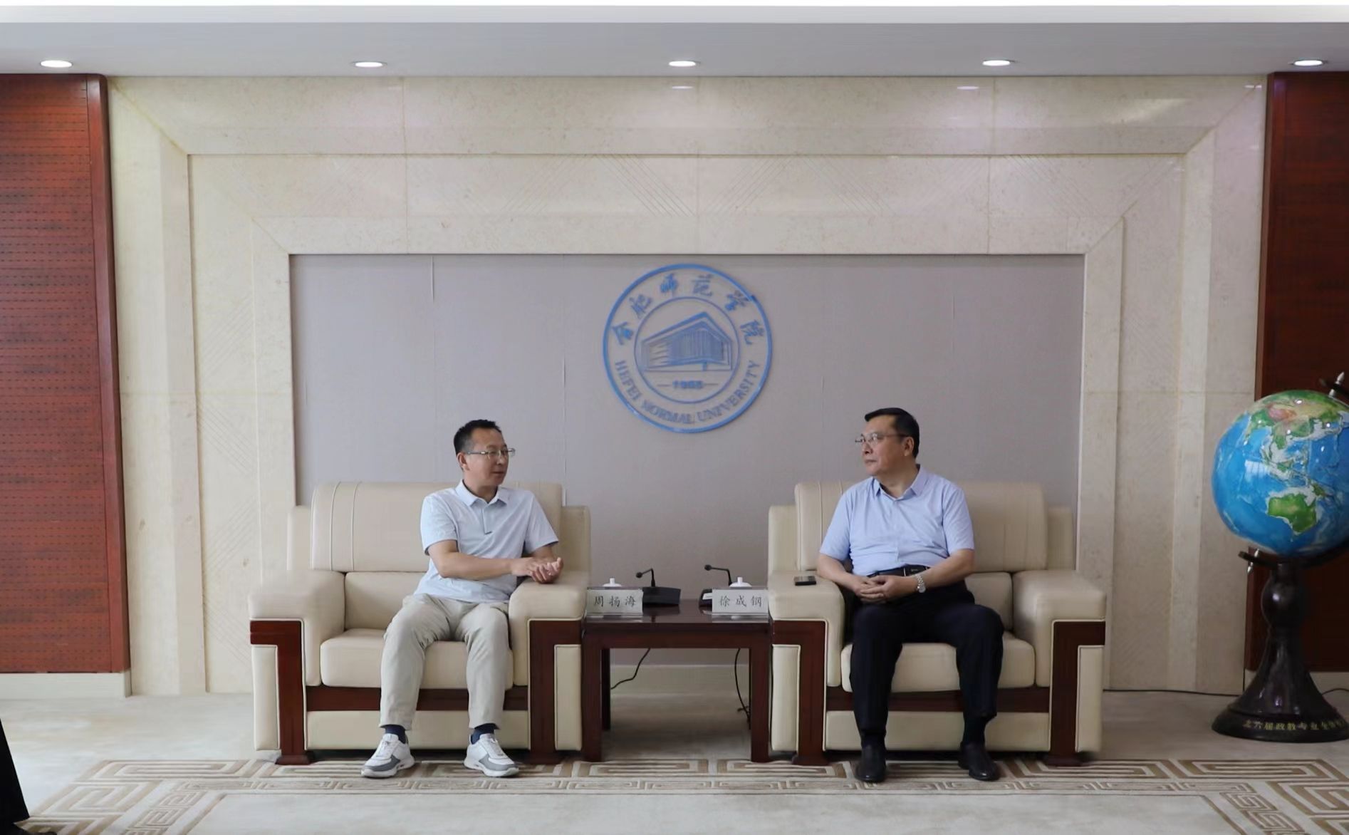 宣讲会结束后,院党委书记徐成钢在行知楼1907接待室会见了周扬海一行。