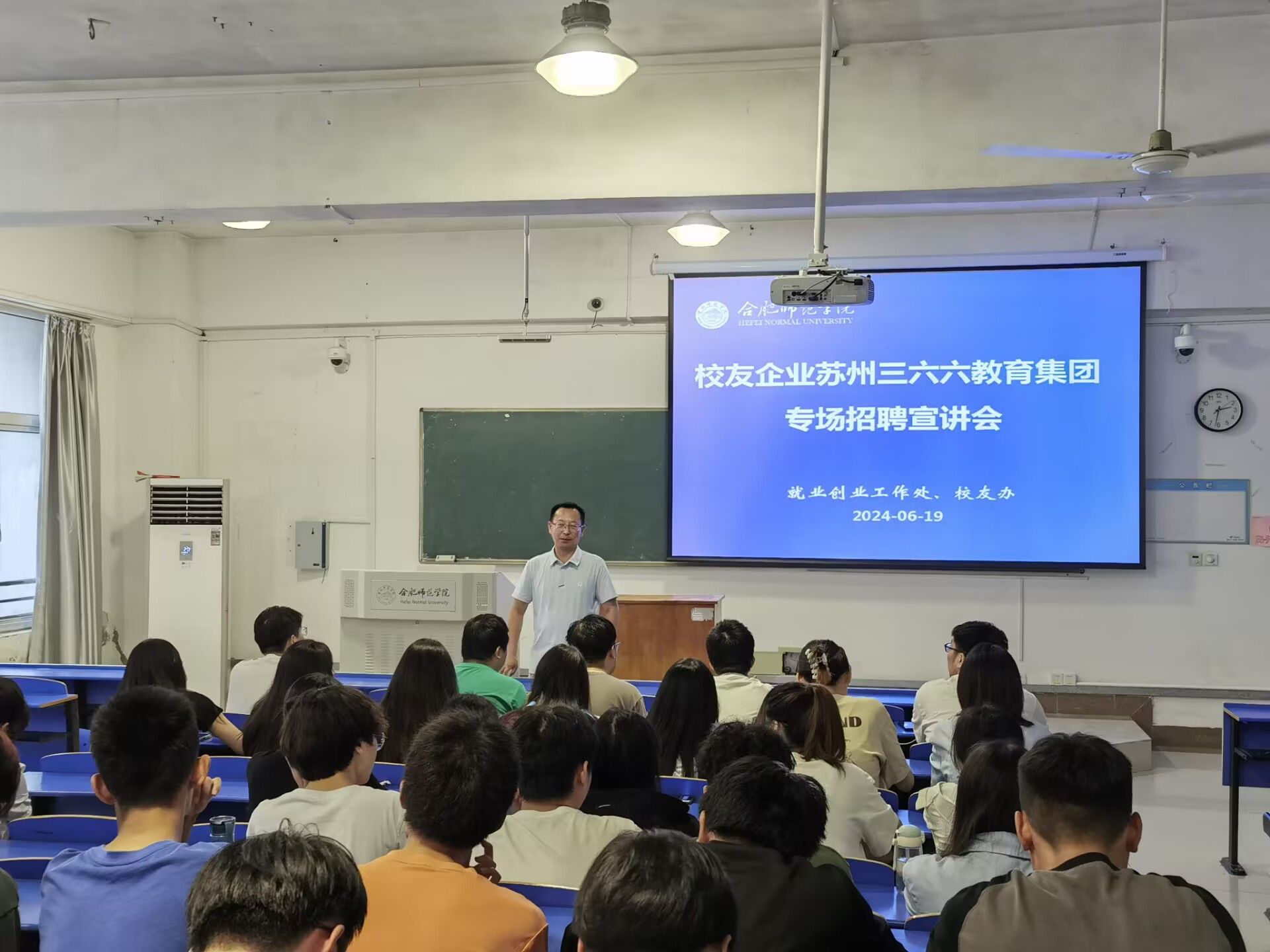 为进一步加深校企合作,拓宽毕业生就业渠道,6月19日,应学院邀请,校友企业苏州三六六教育集团在锦绣校区逸夫楼A106教室举办了专场招聘宣讲会。宣讲会由就业创业工作处处长李健主持,发展规划处(校友办)副处长樊彩萍及近百名相关专业学生代表参加。
