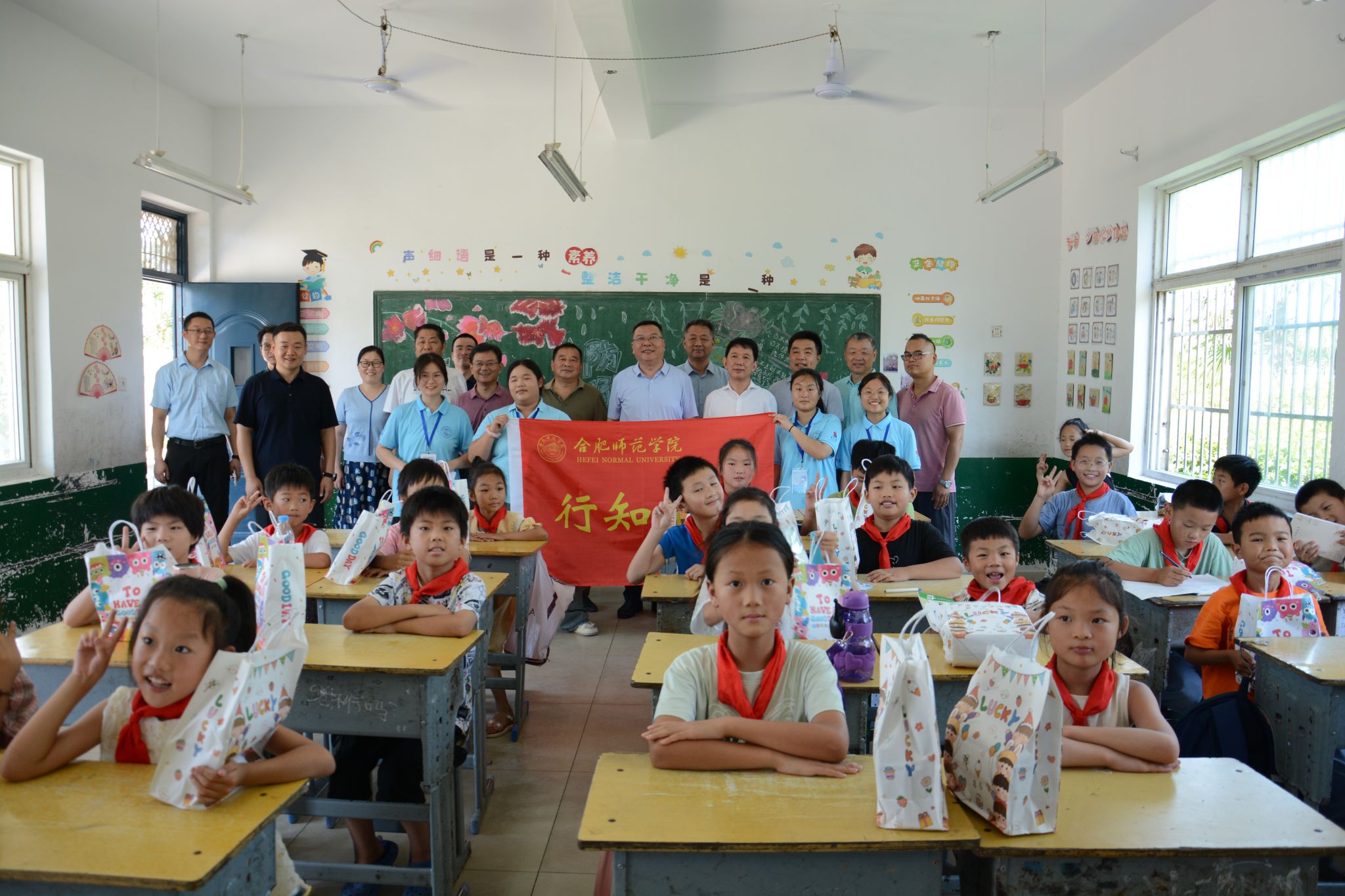 随后,徐成钢一行来到汪庙小学看望在这里开办的口孜镇行知学堂的小先生和小学员们,与小先生们亲切交谈,了解活动开展情况和他们的生活保障情况,对他们牺牲暑假、不畏酷暑、服务社会、自找苦吃的精神给予充分肯定;为小学员们赠送学习用品,勉励他们好好学习、全面成长,度过充实快乐安全的暑假。