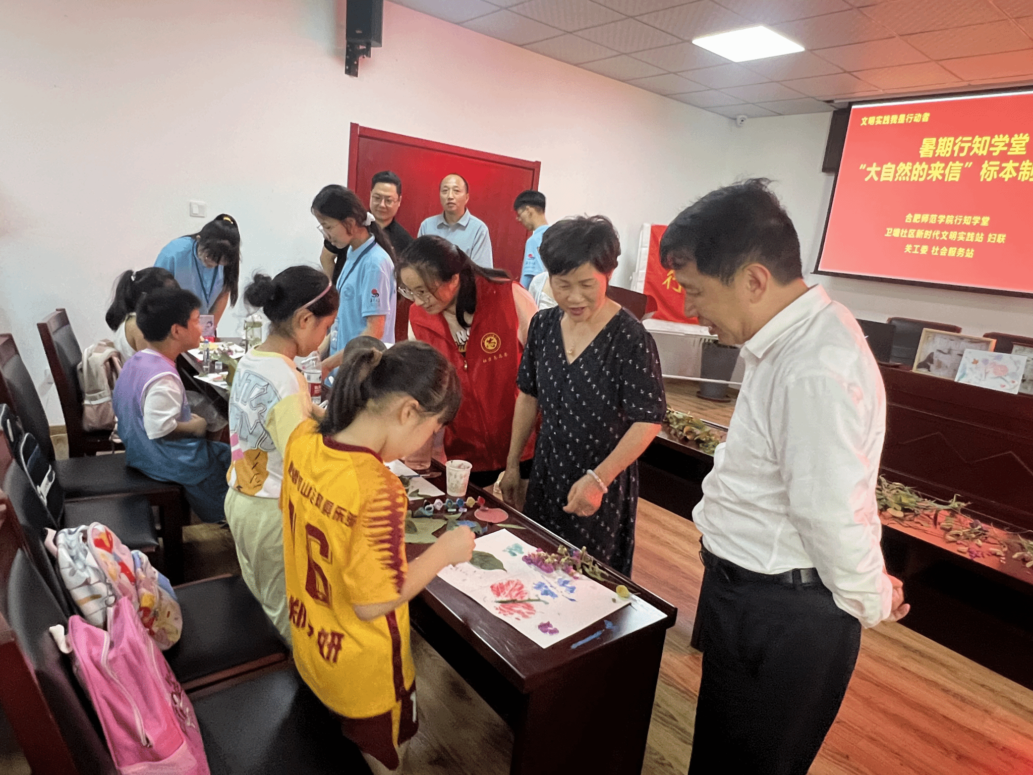 徐文林一行饶有兴致地观看了动植物标本制作课程,对小学员们的创新思维给予高度赞扬,并为小学员们发放了文具礼品和消暑西瓜,鼓励小学员们好好学习,天天向上。慰问活动在一片欢声笑语中圆满落下帷幕,在最后的集体合照环节,小学员们纷纷展示自己的作品,与大家分享自己的创作心得和感受。