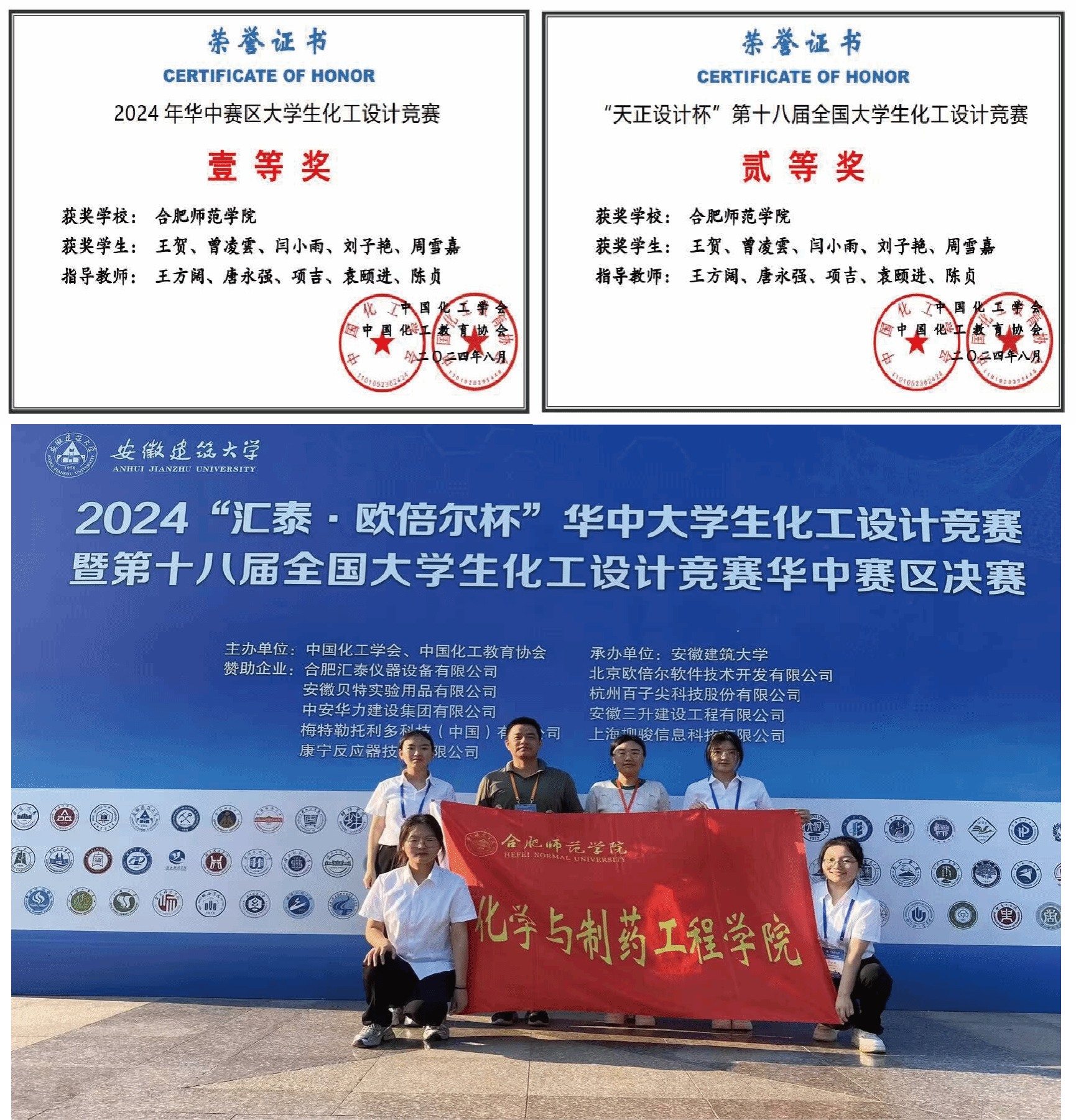 近日,化学与制药工程学院传来喜讯,化学工程与工艺专业的三组队伍在“天正设计杯”第十八届全国化工设计大赛中凭借出色的表现分别获得了全国二等奖(华中赛区一等奖)、全国三等奖(华中赛区二等奖)和全国三等奖的优异成绩。这是学院在该比赛中连续第三次获得赛区一等奖,展现了学院在化工专业教学的卓越实力和不懈追求。