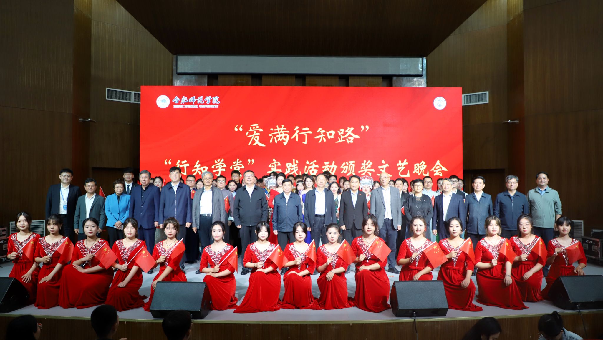 10月16日晚,“爱满行知路”行知学堂实践活动颁奖文艺晚会在锦绣校区音乐厅举行,中国陶行知研究会常务副会长陈洛,副会长吕德雄、陈华、童兆玲、童富勇、王仁雷、程晋升、卢志文,监事陈振华,中国陶行知研究会副会长、安徽省陶行知研究会会长、beat365唯一官方网站党委书记徐成钢,beat365唯一官方网站党委副书记、院长方东玲,党委副书记梁立昌,党委委员、纪委书记、监察专员徐文林,副院长华银峰,党委委员、组织部部长赵帮恚,党委委员、宣传部、统战部部长常树宝出席活动,中国陶行知研究会2024年学术年会与会代表、“行知学堂”实践活动先进典型获奖单位和个人、学院师生代表到场观看,晚会通过“合师青年”抖音官方号直播。