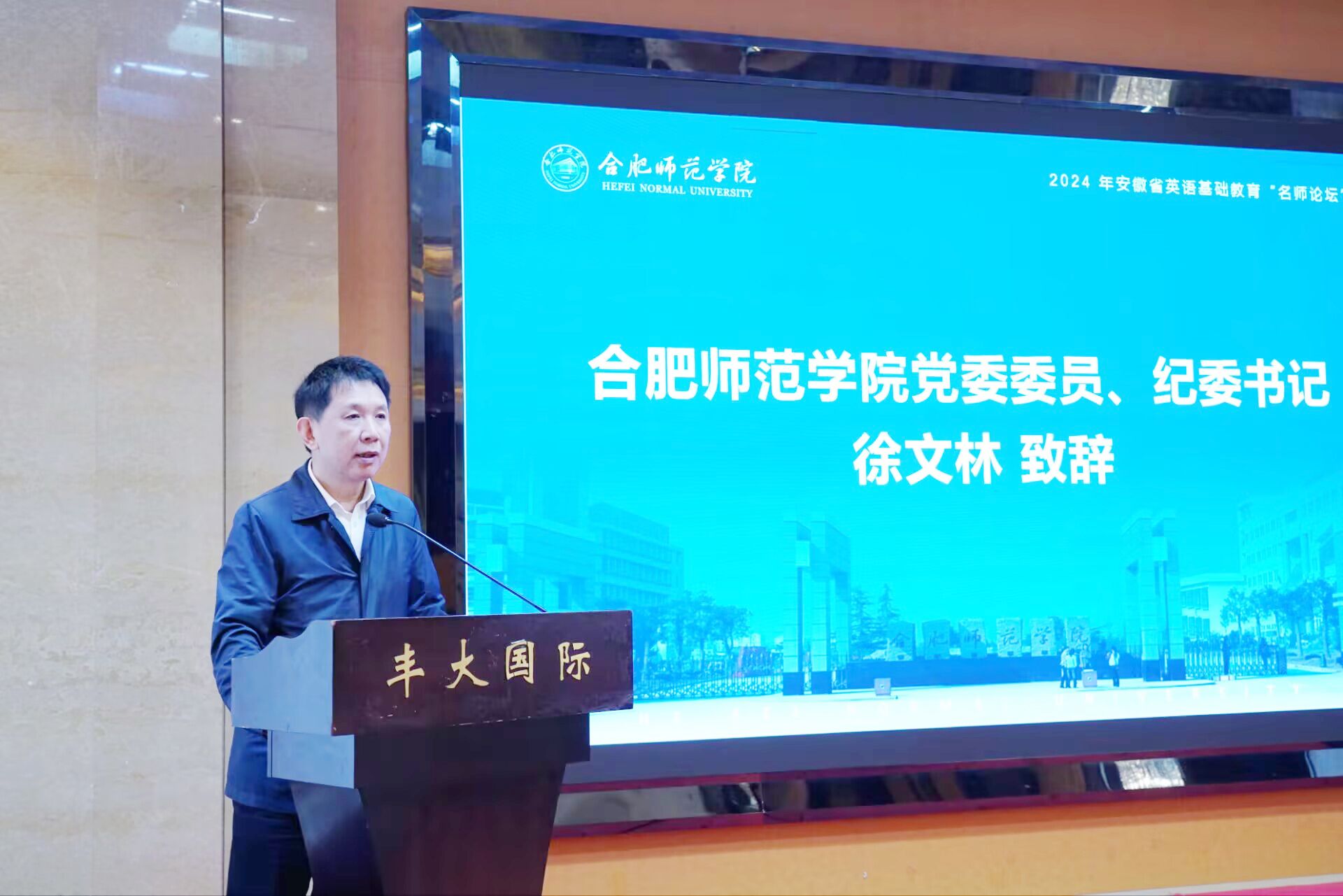 10月19日,学院在合肥丰大国际大酒店圆满举办了首届安徽省英语基础教育“名师论坛”。论坛由安徽省教育学会中小学外语教学专业委员会与安徽省英语教育教学研究基地联合主办,由外国语学院承办。上海市英语教育教学研究基地、安徽省教育科学研究院、合肥市教育科学研究院、芜湖市教育科学研究所,以及合肥和安徽省其他地市的英语教育专家、教研员、名师工作室负责人和一线骨干教师共40余人出席论坛。
