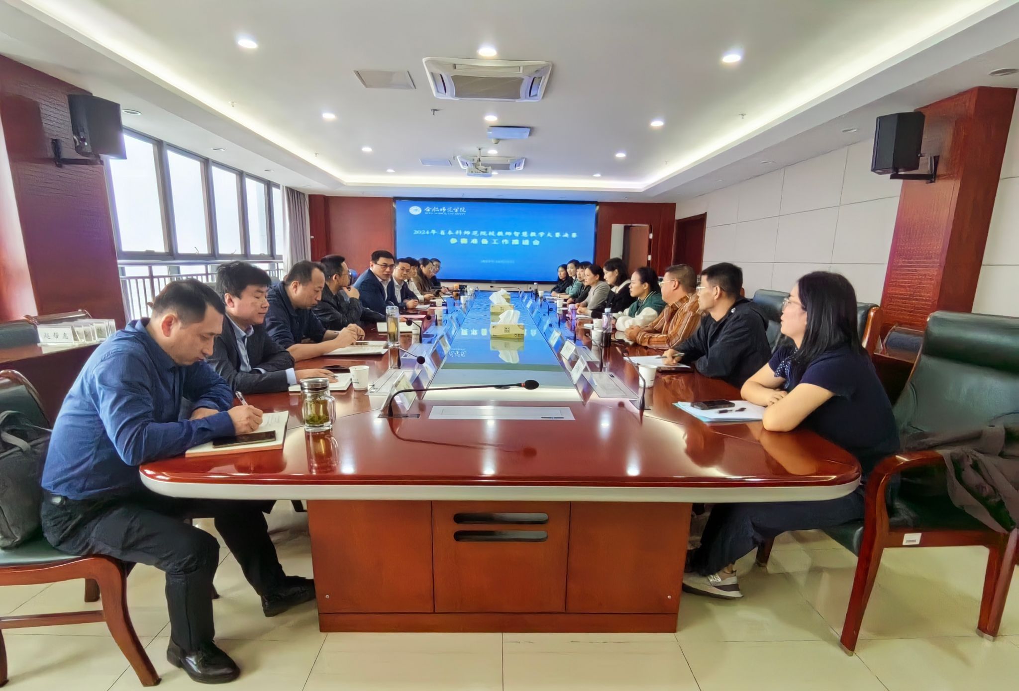 为进一步提升改进教学方法、引入新型教学手段、提升课堂教学质量、增强课程教学示范作用,充分做好智慧教学大赛省级决赛的参赛准备组织工作,10月21日中午,学院专题召开2024年省本科师范院校教师智慧教学大赛决赛参赛准备工作推进会。院党委委员、副院长周端明到会指导,入围决赛教师及所在二级学院教学副院长、教务处(教师教学发展中心)工作人员参会,会议由教务处副处长马强强主持。