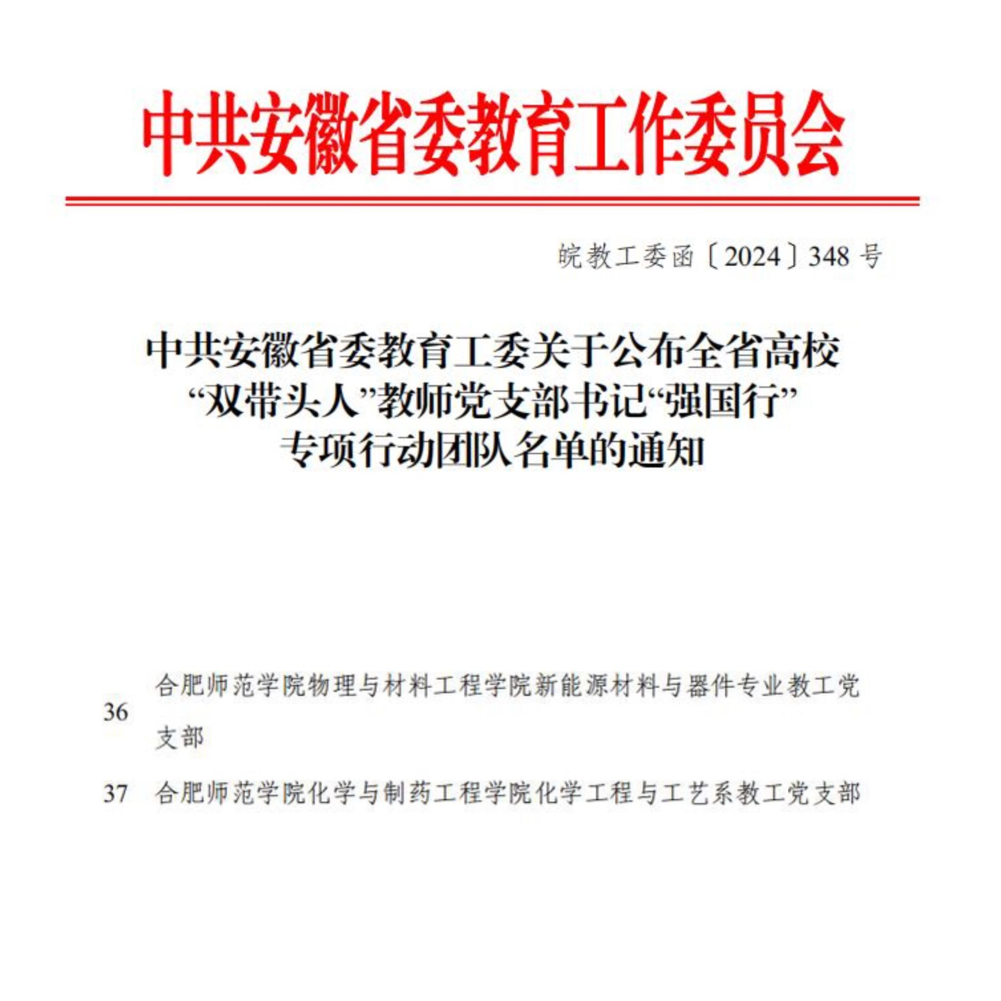 近日,省委教育工委公布全省高校“双带头人”教师党支部书记“强国行”专项行动团队名单,beat365物理与材料工程学院新能源材料与器件专业教工党支部、化学与制药工程学院化学工程与工艺系教工党支部成功入选。