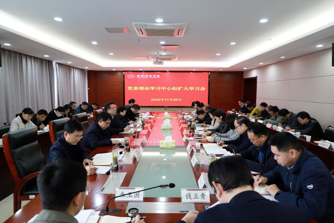 11月20日上午,学院在行知楼2008会议室举行党委理论学习中心组扩大学习会。党委书记徐成钢主持会议并讲话。党委理论学习中心组成员,各院系级党委(党总支、直属党支部)书记,各学院院长,各部门主要负责人参加学习。