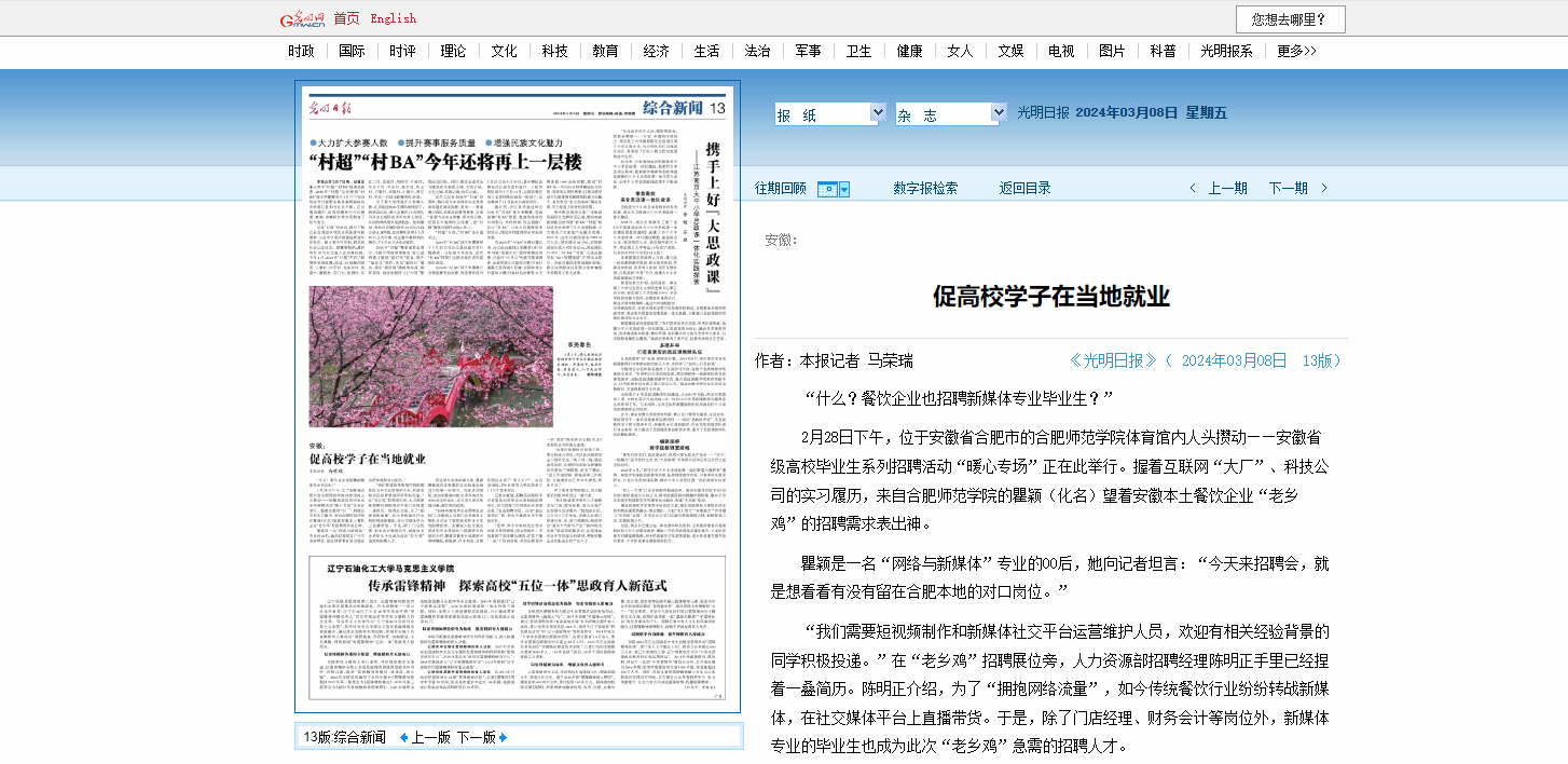 《光明日报》等主流媒体报道beat365促就业相关举措