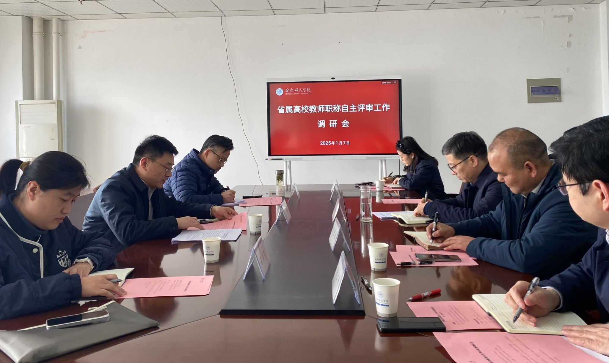 华银峰代表学院向省属高校职称自主评审调研组的到来表示欢迎,就学院职称评审工作重点围绕“四个聚焦”,切实加强组织领导,严格政策落实,重点抓好评审方案制定、操作流程规范、评价方式改革创新等方面进行了汇报。他指出,学院职称评审工作在平稳有序的基础上,树立了业绩贡献评审的导向,营造了广大教师积极干事创业的良好氛围,切实发挥了职称评审指挥棒和风向标作用。