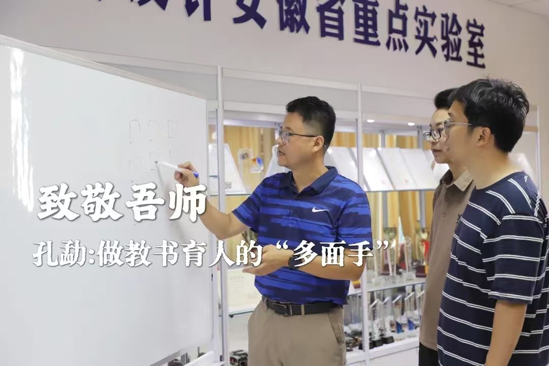 2024年9月,电子信息与集成电路学院教授孔勐获评”安徽省优秀教师”称号。他不仅是全省高校“双带头人”教师党支部书记工作室的“先锋模范”,也是荣获2项安徽省科学技术二等奖,安徽省电子信息科技一等奖等众多成绩的“科研达人”;不仅是实验室里常年陪学生共同实验、开展研究的“学术导师”,也是指导学生获全国大学生“挑战杯”竞赛、电子设计大赛30余项的“金牌教练”。来校工作15年,无论作为学院教工第一党支部书记、电子信息工程系主任,还是作为一位任课教师、竞赛指导老师、学业导师,孔勐总是把教书育人放心中,扮好多角色、当好多面手。