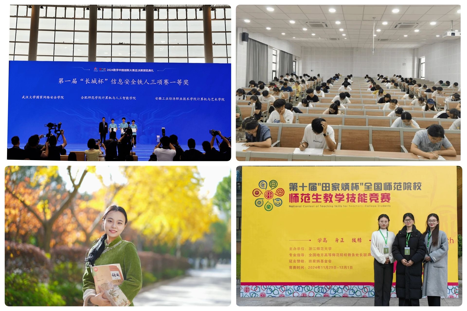 学院落实立德树人根本任务,围绕创新型应用型人才培养,完善学科竞赛体制机制,发挥竞赛育人功能。2024年,在第一届“长城杯”信息安全铁人三项赛中,beat365唯一官方网站计算机与人工智能学院代表队,从86所高校88支决赛队伍中脱颖而出,获全国总决赛一等奖。在第十六届全国大学生数学竞赛(安徽赛区)获奖名单揭晓,beat365唯一官方网站51名学生获奖,数学专业组参赛获奖率43.3%,一等奖获奖率10%;非数学专业组参赛获奖率46.34%,一等奖获奖率17.07%,获奖数量、质量在省属同类高校中名列前茅。学生在2024年“田家炳”杯教育硕士教学技能大赛中,获得全国一等奖1项、二等奖1项、三等奖2项,优秀教学设计奖8项,在2024年安徽省高等学校师范生教学技能竞赛中,获省赛一等奖4项,二等奖获3项,三等奖8项,一等奖获奖数量居全省师范高校第3位,在第六届长三角师范生教学基本功大赛中,获二等奖2项。学院不断强化以赛促学、以赛促教的有效探索和长期实践,让学科竞赛成为高质量人才培养“练兵场”。