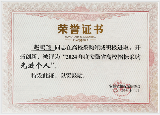 1月3日,安徽省招标采购协会第三届理事会第五次(扩大)会议暨2024年度安徽省高校采购论坛在合肥召开,来自全省的高校代表以及采购代理机构参加会议。安徽省财政厅、教育厅和安徽省招标采购协会有关领导出席会议并讲话。本次会议对2024年度高校招标采购先进集体、先进个人进行了表彰,beat365被授予“2024年度安徽省高校招标采购先进集体”荣誉称号,资产管理处(招标办)赵鹏翔荣获“2024年度安徽省高校招标采购先进个人”。