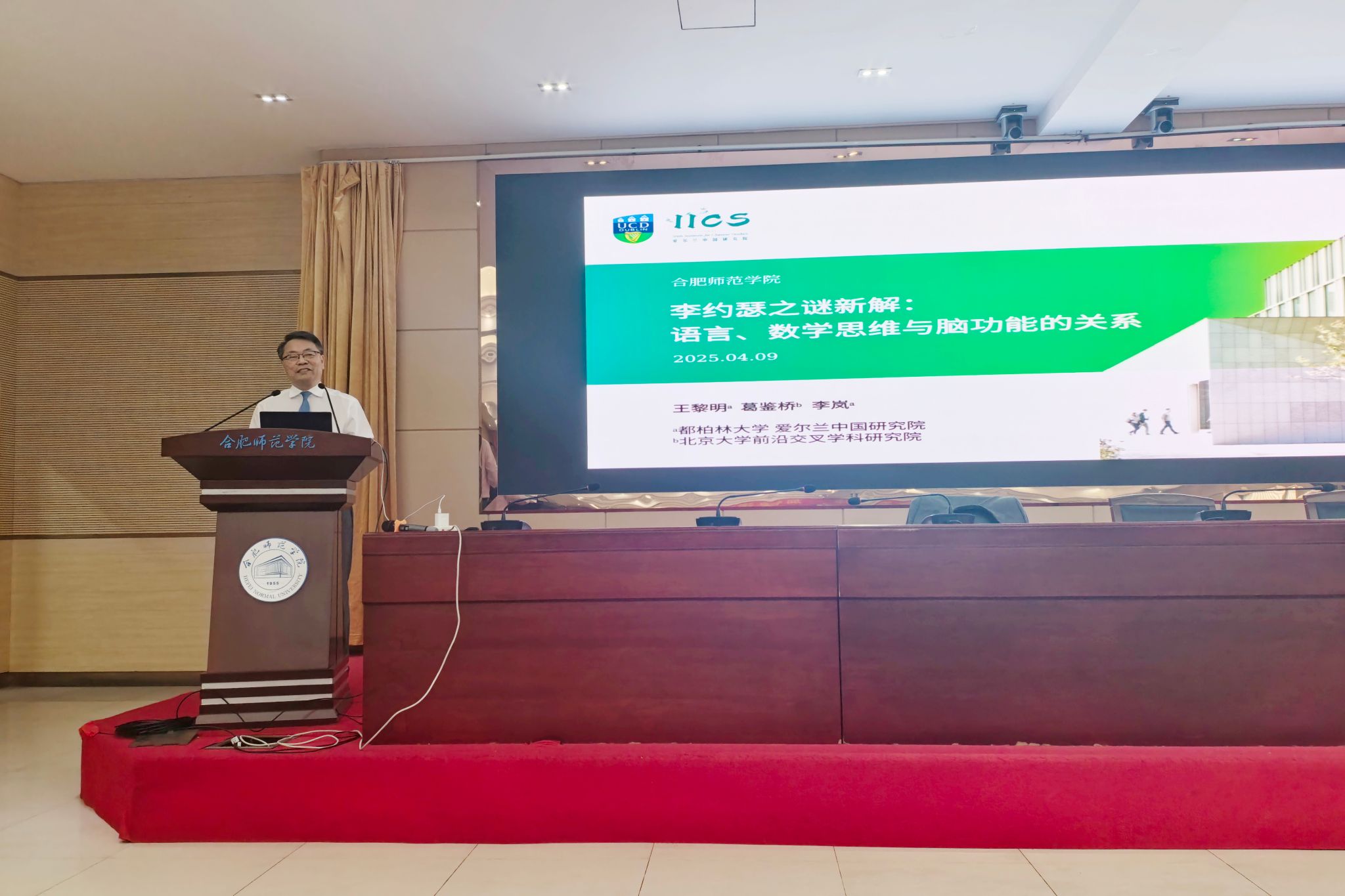 4月9日下午,在安徽省国际中文教育协作机制的协调下,爱尔兰国立都柏林大学中国研究院院长,都柏林大学孔子学院院长、全球中国经济大讲堂学术委员会主任、欧洲中国经济学会秘书长、爱尔兰中国研究会会长、国务院侨务办公室专家咨询委员会委员、北京市海聚人才及特聘专家、北京工业大学经济管理学院特聘教授王黎明受邀来校开展交流和讲座。