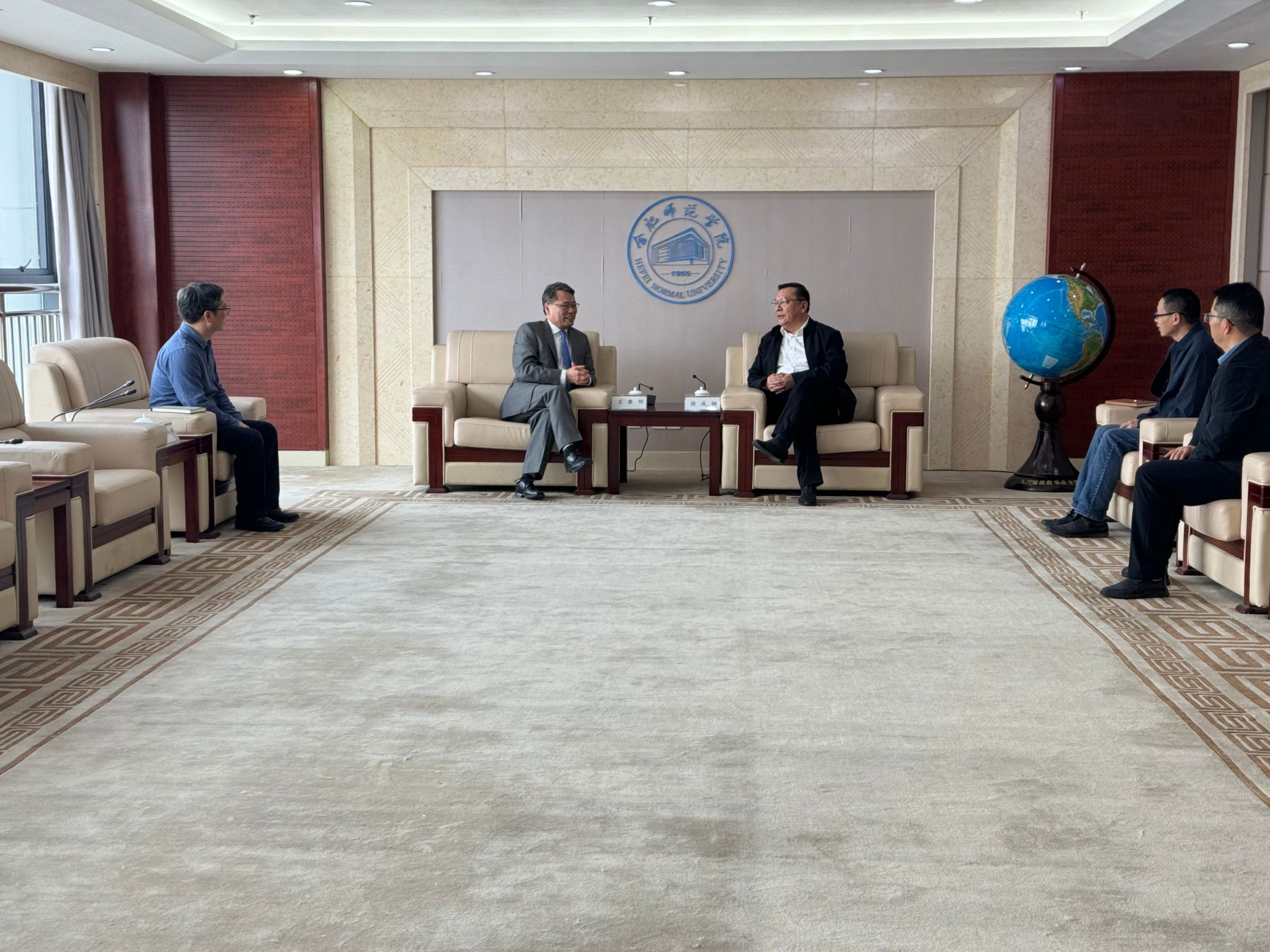 院党委书记徐成钢亲切会见王黎明,党委委员、副院长华银峰出席见面会。研究生处、国际交流与合作处负责人参加座谈交流。