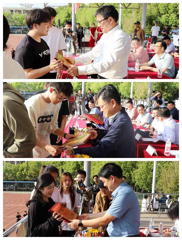 在颁奖环节,党委委员、副院长周端明为教工团体总分获奖代表队、甲组团体总分获奖代表队颁奖。党委委员、组织部部长赵帮恚为甲组男子团体总分获奖代表队、乙组团体总分获奖代表队颁奖。党委委员、宣传部部长、统战部部长常树宝为体育道德风尚奖的代表队、甲组女子团体总分获奖代表队颁奖。