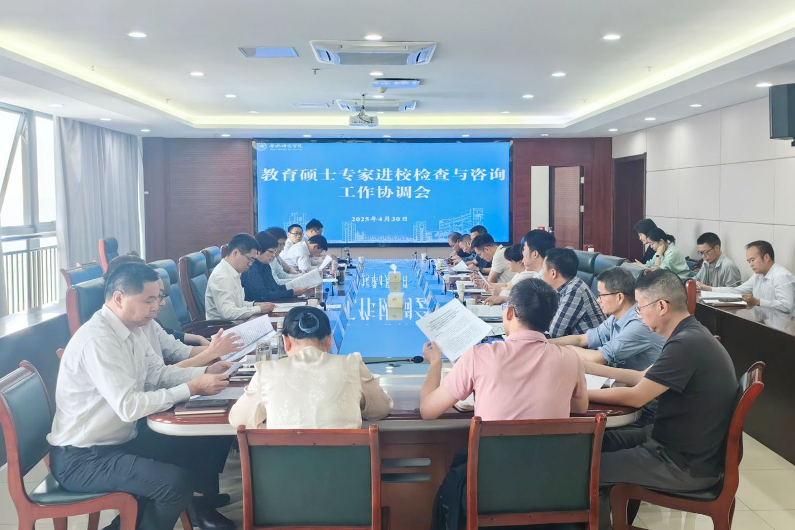 会上,研究生处负责人首先传达了全国教育专业学位研究生教育指导委员会文件精神与具体时间安排,并简要汇报了迎检准备情况。