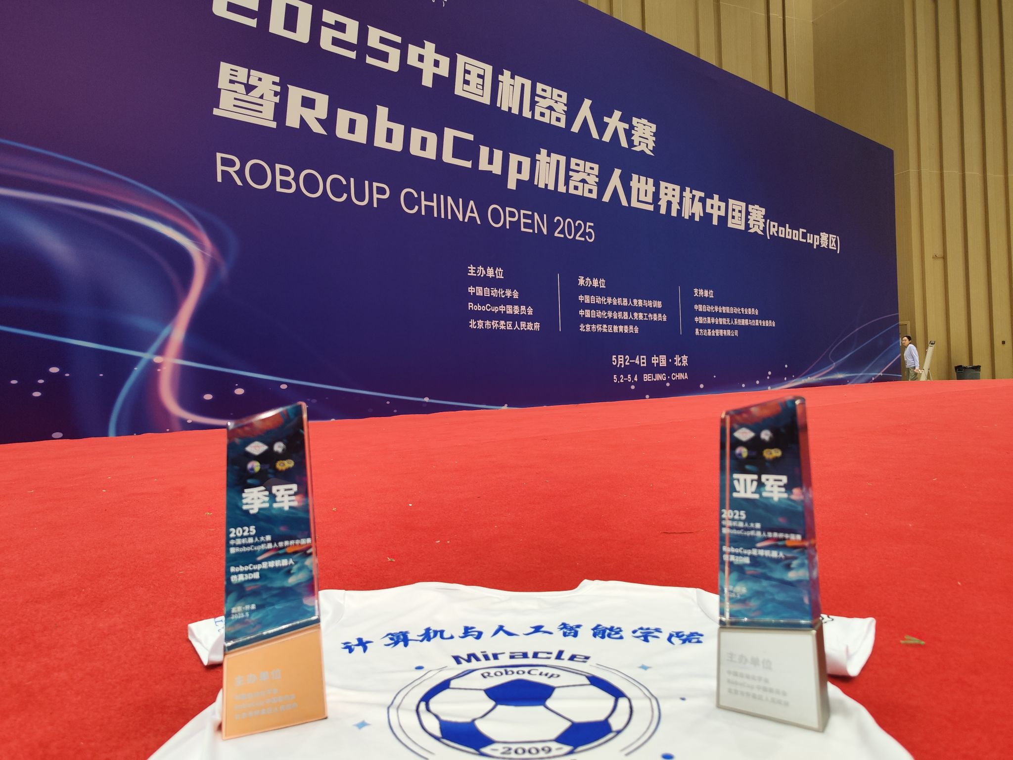 5月2日至4日,2025中国机器人大赛暨RoboCup机器人世界杯中国赛在北京雁栖湖国际会展中心圆满落幕。作为国内机器人领域最具影响力的赛事之一,本届大赛由中国自动化学会、RoboCup中国委员会及北京市怀柔区人民政府联合主办,吸引了全国73所高校的233支参赛队伍同台竞技,成为展示机器人技术创新与学术成果的重要平台。经过激烈角逐,计算机与人工智能学院机器人创新实验室Miracle团队在RoboCup仿真2D与仿真3D项目中分别斩获亚军与季军,双双登上领奖台。