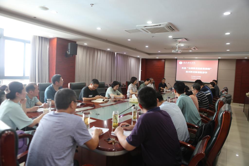 本网讯 7月31日上午,党的二十大代表、安徽师范大学马克思主义学院博士生导师、全国模范教师、全国“最美思政课教师”、全国师德标兵路丙辉教授应邀在学校锦绣校区行知楼2008会议室,作题为“讲好思政课,要练好‘两个功夫’”的主题报告,这也是学院思政课教师政治能力提升暑期专题培训的重要内容。
