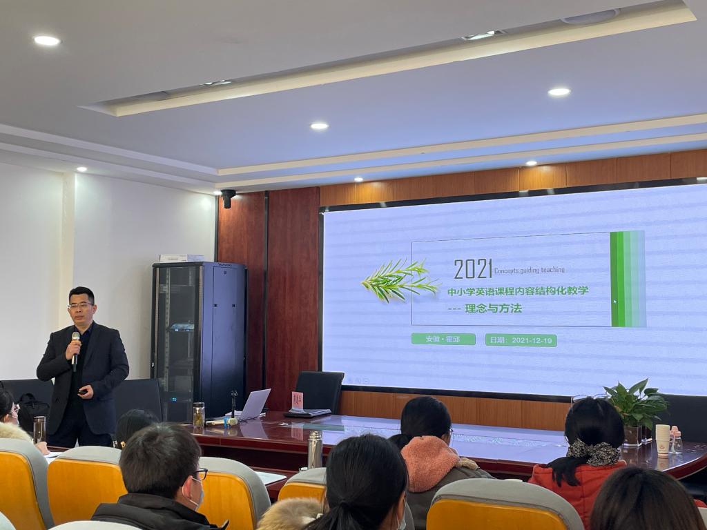 在职教师教育既是外国语学院师范教育的有机组成部分,也是学校强化师范生培养、紧密联系基础教育的桥梁。蒋道华同志在完成常规教学任务的同时,积极认真地投入多类在职教师教育培训项目,既是项目的授课专家,又承担了培训项目设计、实施等工作。十年来,他参与近30项区级以上各类项目,牺牲大量休息时间担任培训班主任,负责专家聘请和接送、学员管理和服务、资料收集与整理、项目跟踪调查等繁琐工作,高质量完成每一期培训项目,得到领导和学员的高度肯定。他自己先后被聘为霍邱县骨干英语教师培训、合肥市基础教育基地培训、包河区暑期英语教师培训项、“国培”颍上县骨干英语教师培训和福州外国语学校暑期培训等项目主讲专家,为地方教师教育发展默默地贡献着自己的力量和智慧。