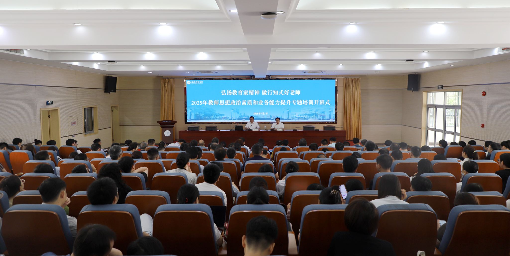 本次教师思想政治素质和业务能力提升专题培训由人事处、教务处、科研处、发展规划处、信息化管理处、党政办等部门共同组织开展,旨在大力弘扬教育家精神,提高业务能力和育人水平,建设一支高素质专业化的“行知式”师资队伍。(人事处:胡兵)