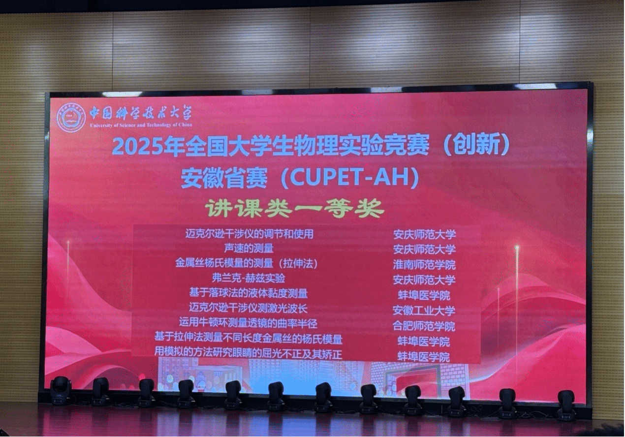 该比赛由安徽省大学物理课程教学指导委员会、安徽省物理学会和安徽省高校大学生物理实验竞赛组织委员会主办,是教育厅备案的A类赛事,旨在培养大学生对大学物理和物理实验课程的学习兴趣和学习潜能,不断深化我国高校物理实验教学改革。