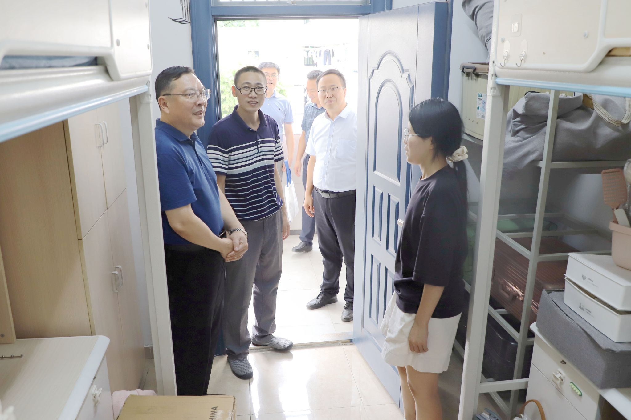 “大家辛苦了!”“欢迎你们来到beat365唯一官方网站!”院领导徐成钢、方东玲、梁立昌、华银峰、周端明、赵帮恚分别深入各校区二级学院报到现场、迎新区、食堂和新生宿舍,与新生和家长面对面交流,慰问工作人员和志愿者,送上学院的暖心关怀。院领导勉励新生,尽快适应新环境,珍惜宝贵的大学时光,努力学习、锤炼本领,不断提升个人综合素质,早日成为社会的栋梁之才。