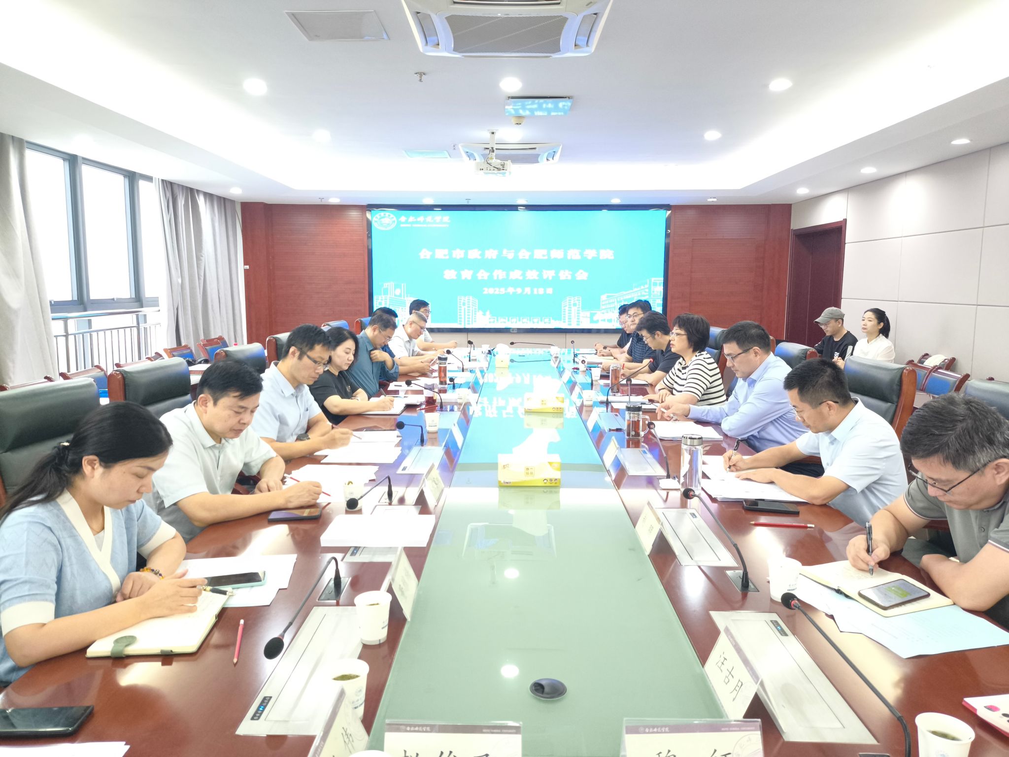 9月18日上午,合肥市教育局党委委员、副局长陈雪梅带队,组织专家对前期市校合作成效工作进行全面评估。院党委副书记、院长方东玲,院党委委员、副院长周端明出席评估会,发展规划处(服务地方办)、党政办、财务处、实验室建设与管理中心、资产管理处和合肥基础教育研究院等单位主要负责人参加会议。会议由周端明主持。