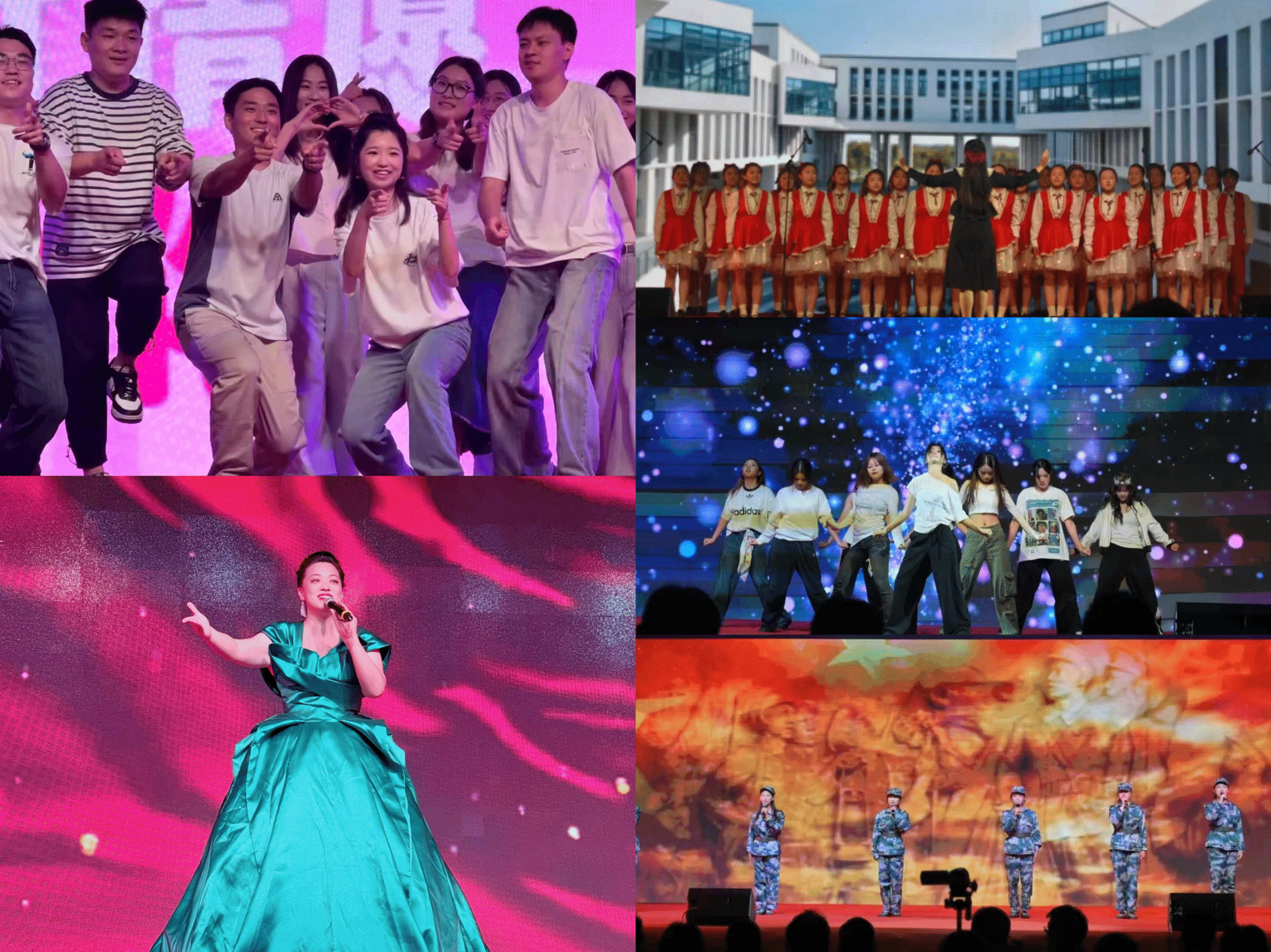 弦舞吉他社带来的歌曲《新长征路上的摇滚》《蓝莲花》拉开了晚会帷幕,动人的旋律点燃了全场。啦啦操《燃动青春》以昂扬的姿态诠释出新时代青年的激情与担当,展现了合师学子朝气蓬勃、奋发向上的精神风貌。武术《藏龙卧虎》刚柔并济,一招一式尽显中华儿女的英姿飒爽。由2025级新生代表带来的朗诵《山河不会忘记》以青春之声诉尽赤子之心,表达了对祖国山河的无限热爱和敬意。舞蹈《淬火》将汗水化为热浪、将舞姿化为锋刃,演绎了青春的蜕变与成长,彰显出青年人百折不挠的青春风采。走秀《霓裳羽衣,镜采华章》穿越千年岁月,用各式传统服饰点亮中华古韵的盛世光华。街舞《历史•重逢新纪元》将潮流碰撞传统,于旋转腾挪间展现出合师学子对优秀传统文化的守正创新,坚定了文化自信。舞蹈《像你这样的朋友》用跃动的青春舞姿诠释了青年间的真挚情谊。合唱《祖国不会忘记你》以醇厚美妙的歌喉赞颂了人民解放军的无私奉献和家国情怀。由2025级新生辅导员带来的舞蹈《爱你》用优美的舞姿展现了浓烈的师生情谊,表达了对新生们热切的关怀与期待。由院团委姚瑶独唱的歌曲《祝福祖国》宛转悠扬,直击人心,表达了对祖国的深情祝福。最后,晚会在大合唱《弹起我心爱的土琵琶》《beat365唯一官方网站校歌》的美好歌声中圆满结束。