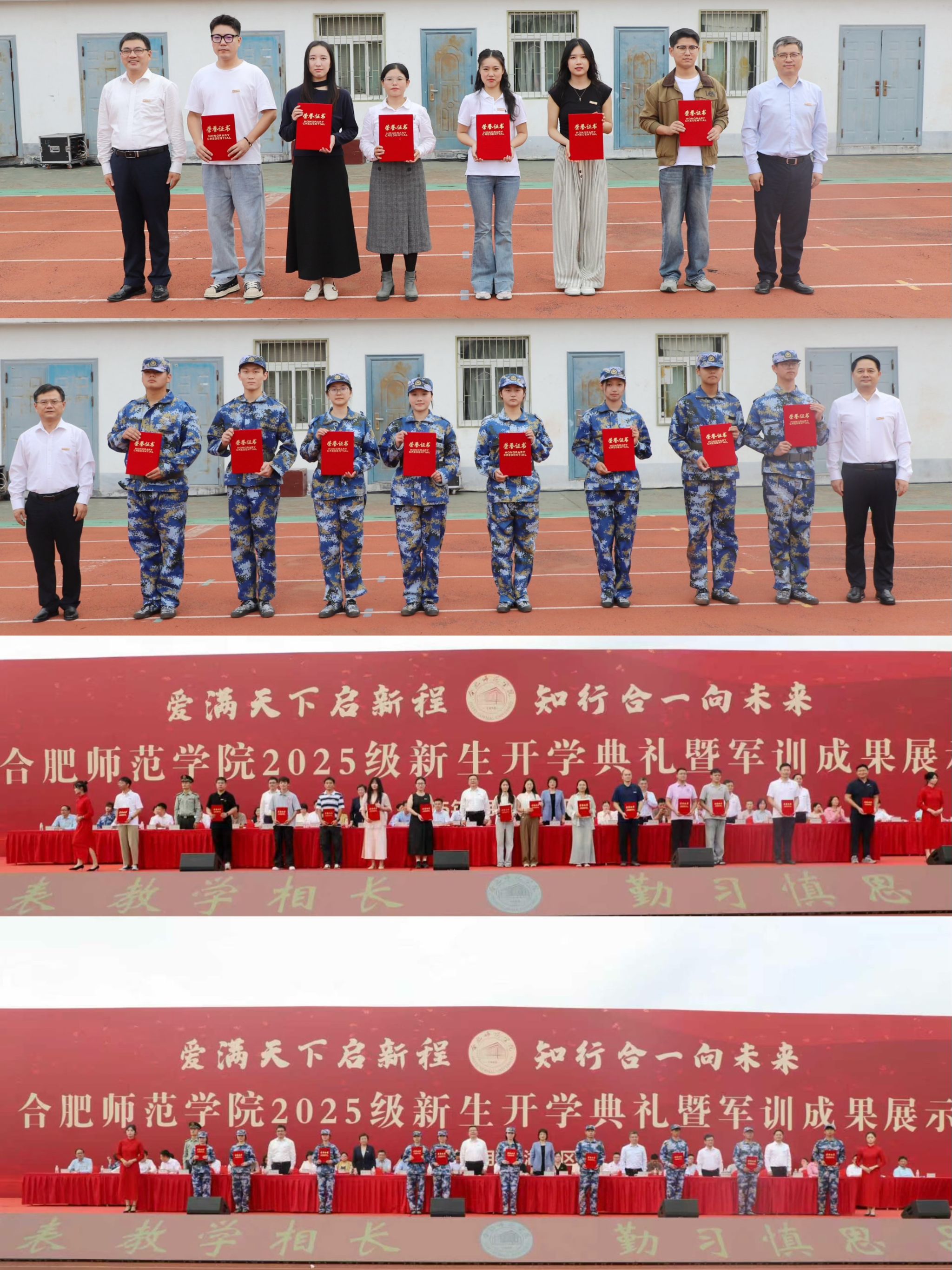成果展示结束后,院党委副书记梁立昌宣读了锦绣校区和滨湖校区《关于表彰2025级新生军训优秀学员、优秀辅导员的决定》。院领导、党委委员、施训单位有关负责人分别为优秀辅导员和军训优秀学员颁发荣誉证书。