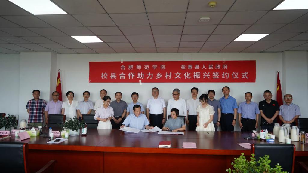 本网讯 7月1日,在庆祝中国共产党成立102周年之际,院党委书记徐成钢、党委副书记梁立昌带领党政办、组织部、发展规划处、音乐学院、美术与设计学院等单位负责人赴金寨县,与金寨县人民政府签订校县合作助力乡村文化振兴协议。六安市委常委、金寨县委书记汪冬出席会议,金寨县委、县政府组织部、宣传部、财政局、农业农村局、文旅体育局、花石乡、古碑镇、南溪镇等单位负责人参加签约仪式。签约仪式由金寨县委常委、宣传部部长叶章科主持。