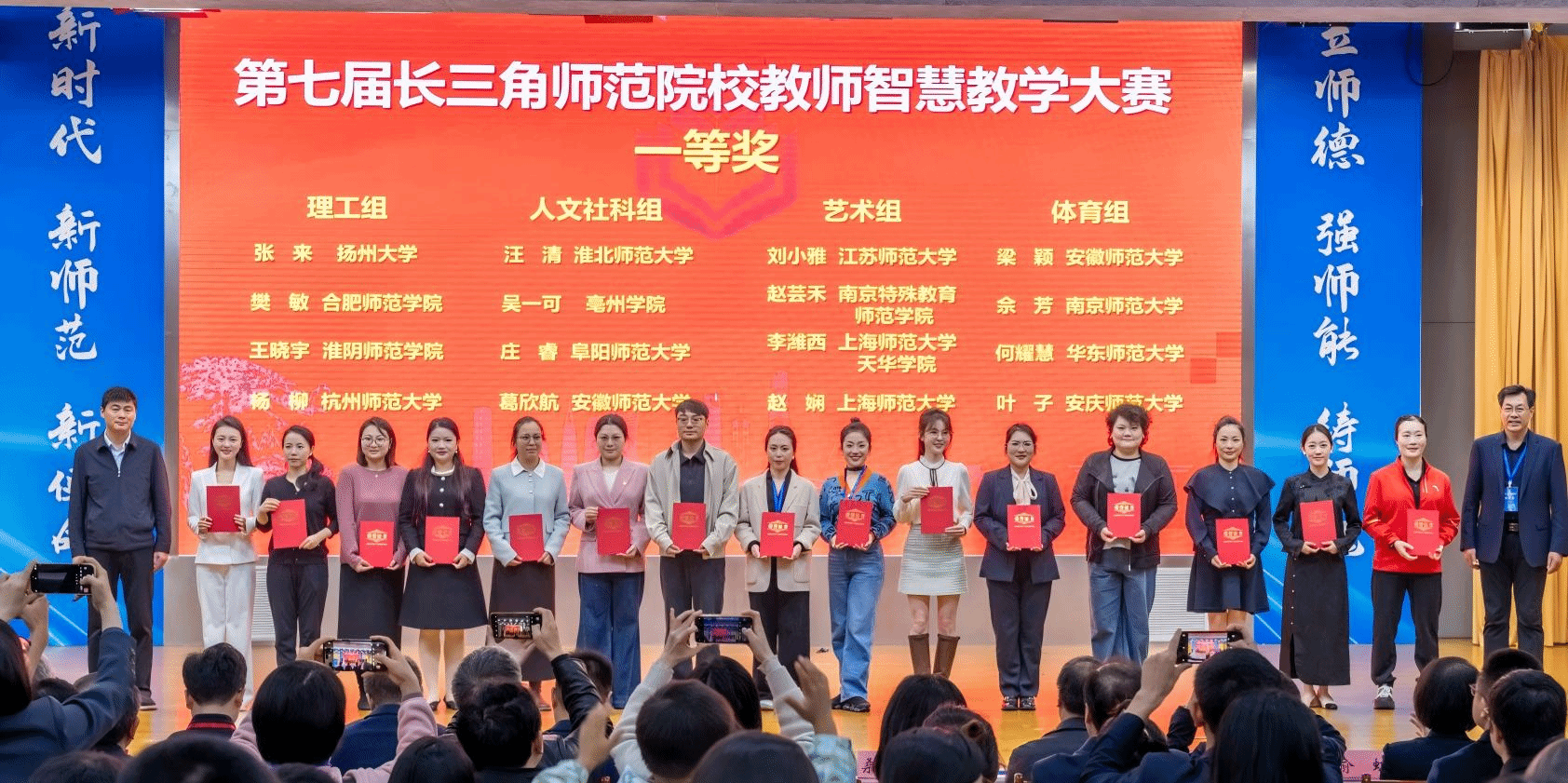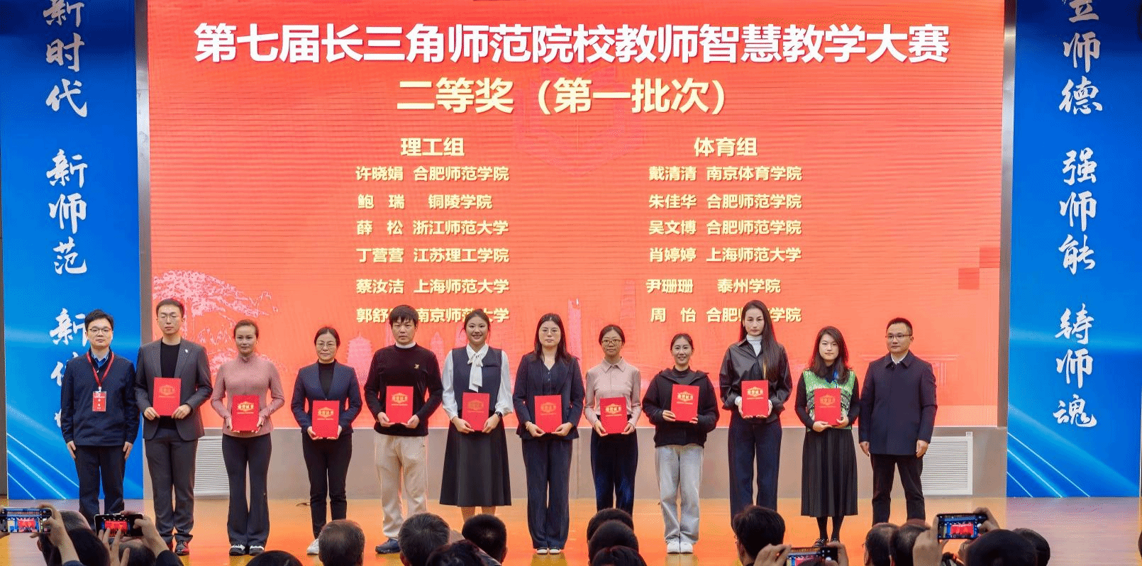 近日,由安徽省教育厅、上海市教育委员会、浙江省教育厅、江苏省教育厅联合主办,安徽师范大学承办的第七届长三角师范生教学基本功大赛与第七届长三角师范院校教师智慧教学大赛在芜湖举行。来自长三角地区51所高校的师范生和教师同台竞技,展现教学风采,我院师生凭借扎实的专业功底和出色的现场表现,在大赛中斩获多项荣誉,成绩斐然。